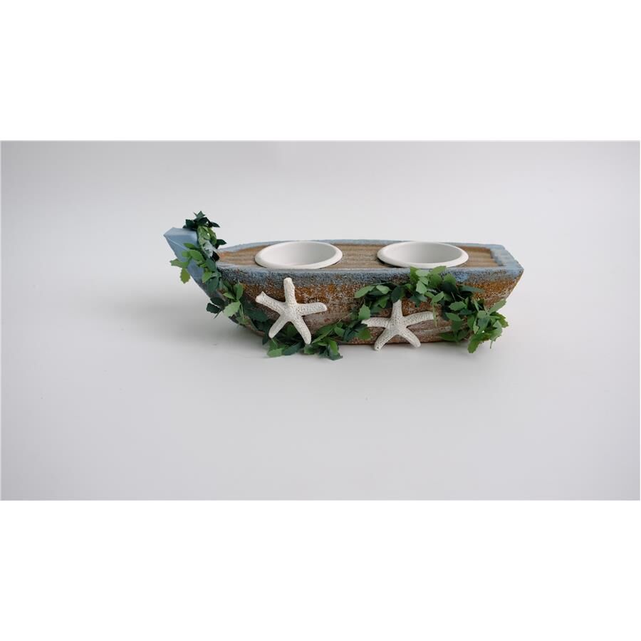 Candelabro de madera diseño lancha marina para 2 velas de 18×6.5×5.5cm