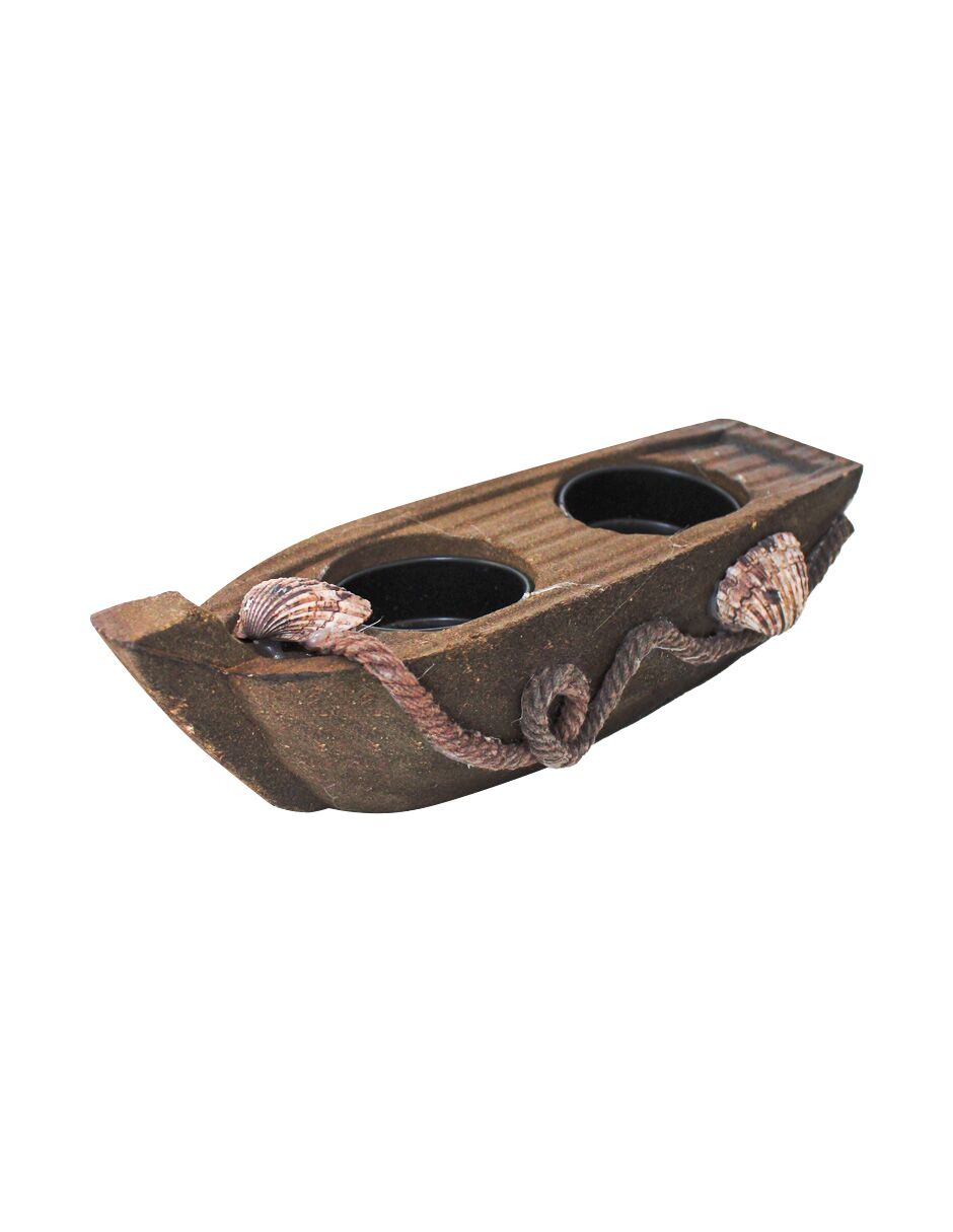 Candelabro de madera diseñó barco para 2 velas café de 18.5x6x5.5