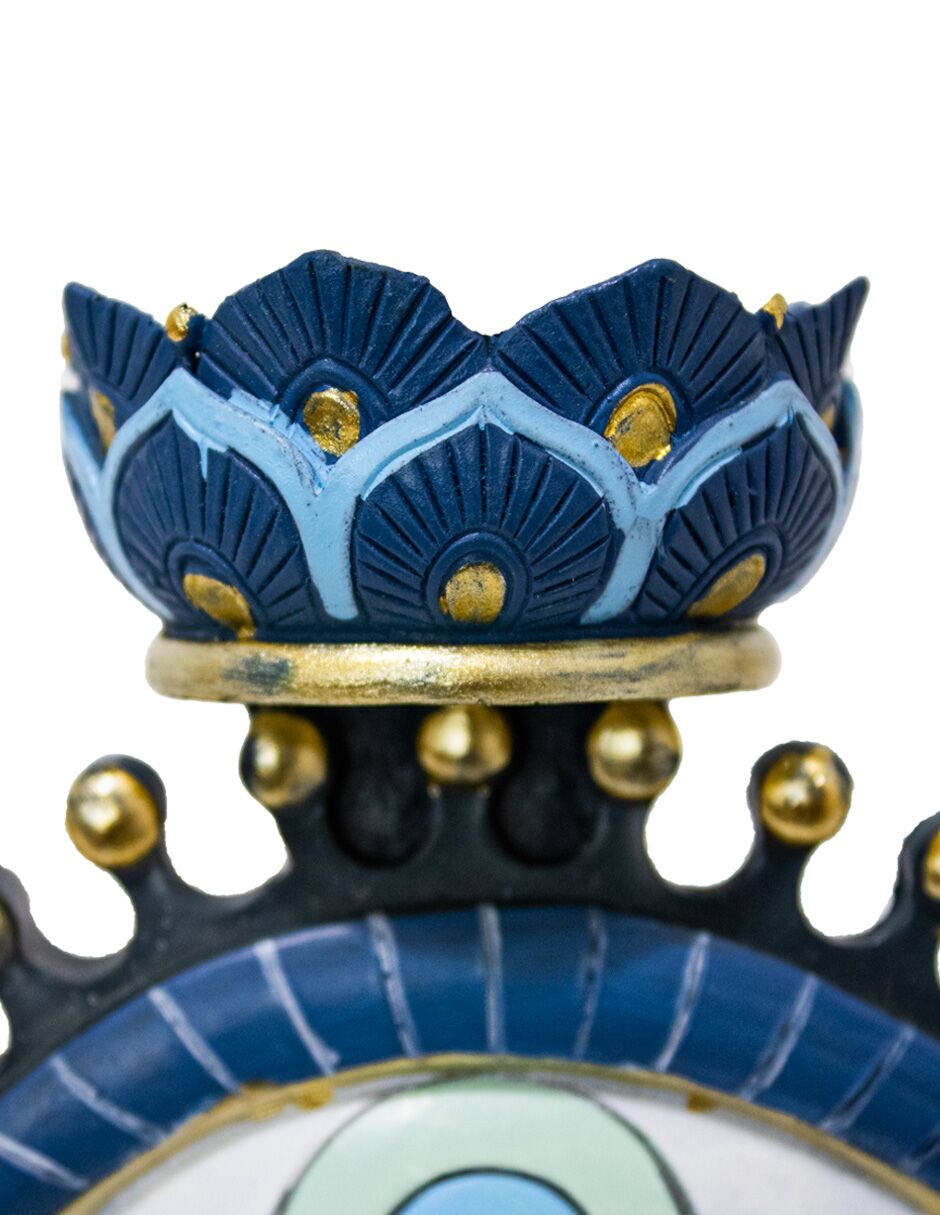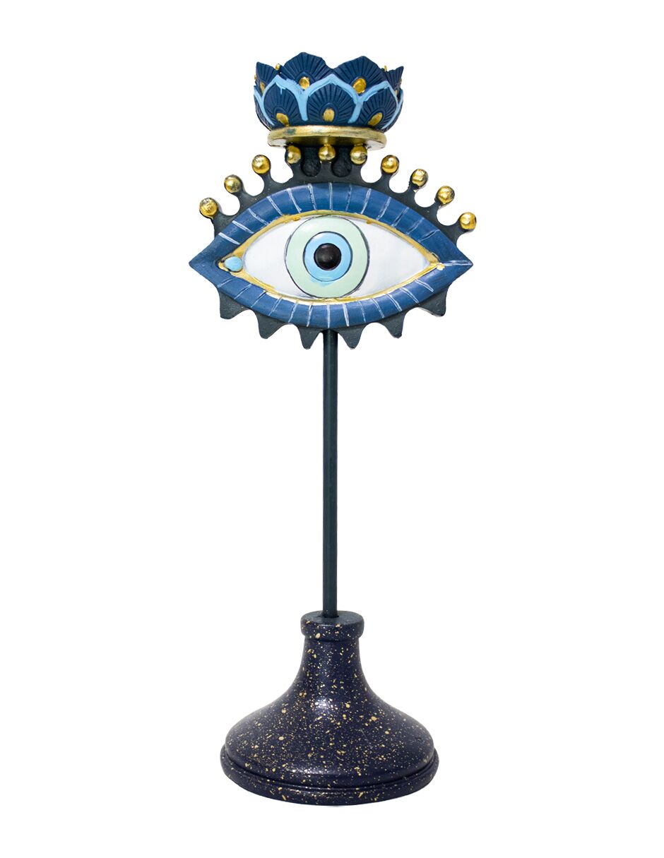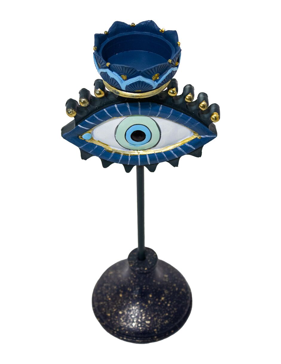Un candelabro de ojo turco en resina, un talismán de protección y buena suerte. Su diseño elegante y místico aporta un toque de paz y armonía a cualquier espacio.