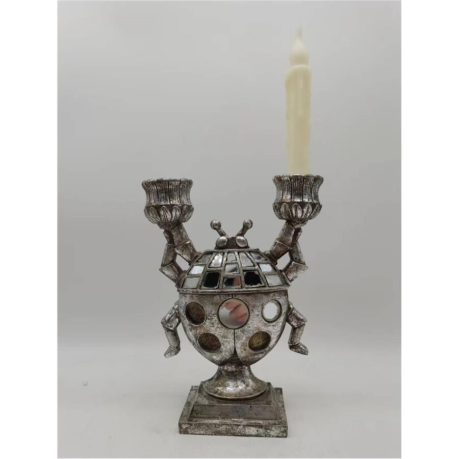 Candelabro para 2 velas de poliresina diseño escarabajo de 16x6x21cm
