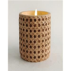 Candelabro redondo de resina con cera y luz LED imitacion rattan de 11x11x11.5cm (Usa 2 baterías AA)
