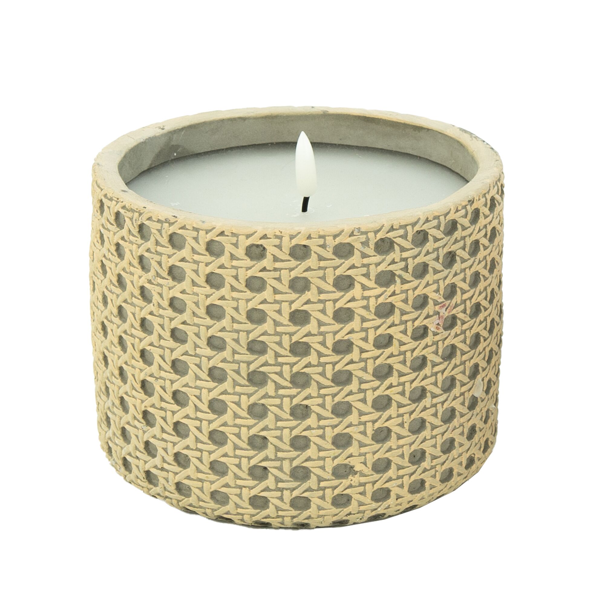 Candelabro redondo de resina con cera y luz LED imitacion rattan de 15x15x11.8m (Usa 2 baterías AA)