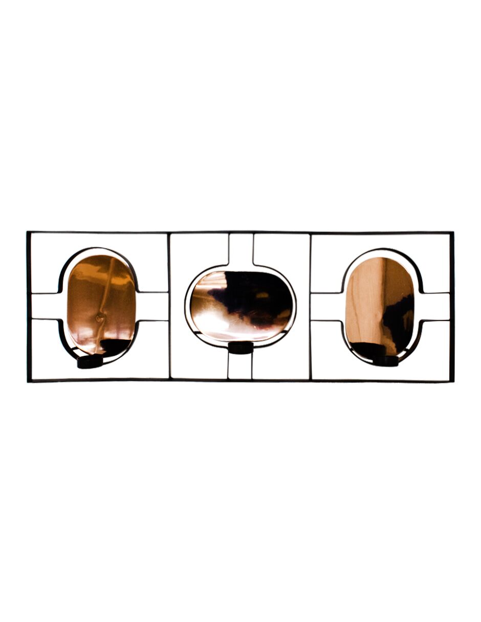Candelero de metal para pared de 3 velas negro con cobre de 8.5x74x25cm