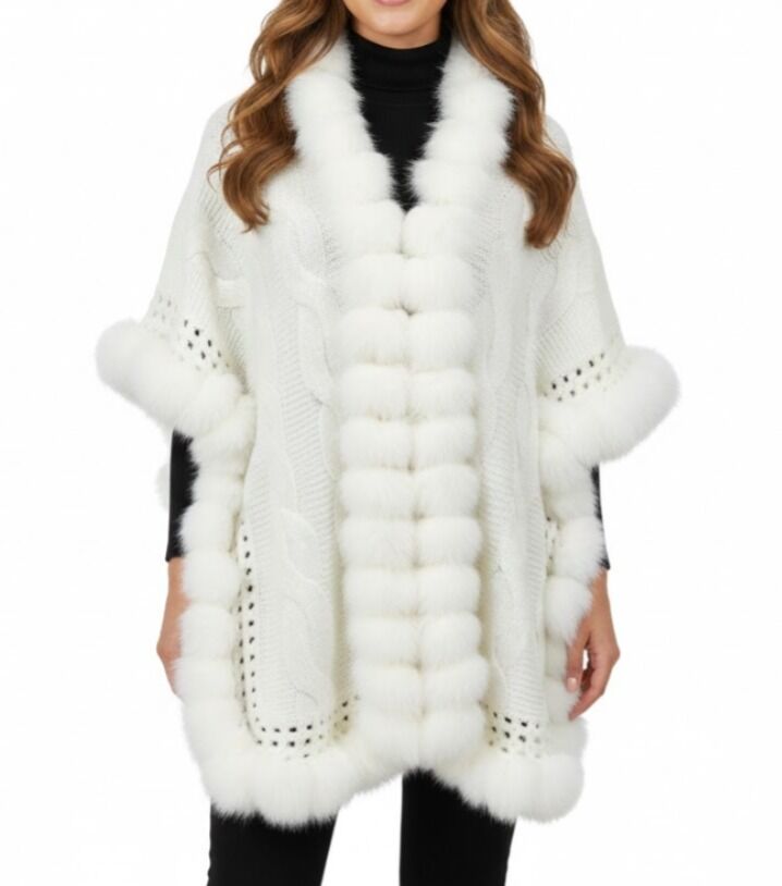 Materiales: Tejido de Punto (Estilo Cable) y Pelaje Sintético. Descubre más piezas que transformarán tu energía y ambiente; te invitamos a visitar la categoría Capas para Mujer.