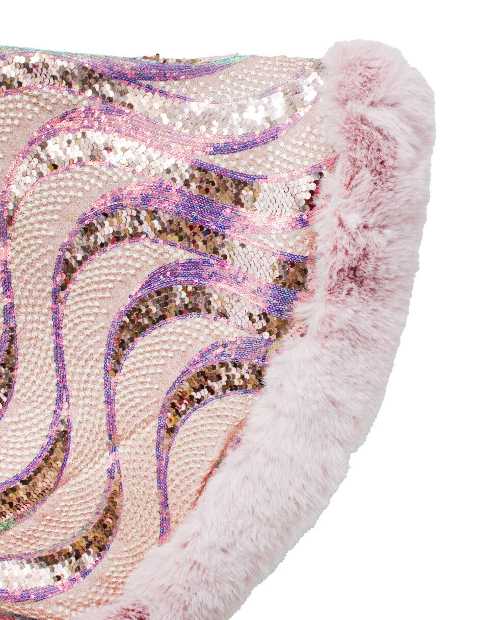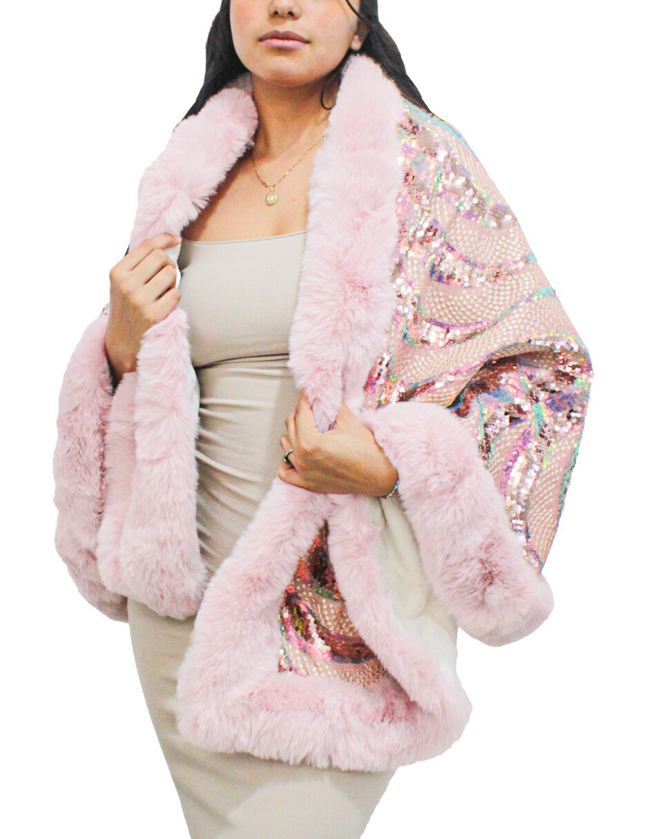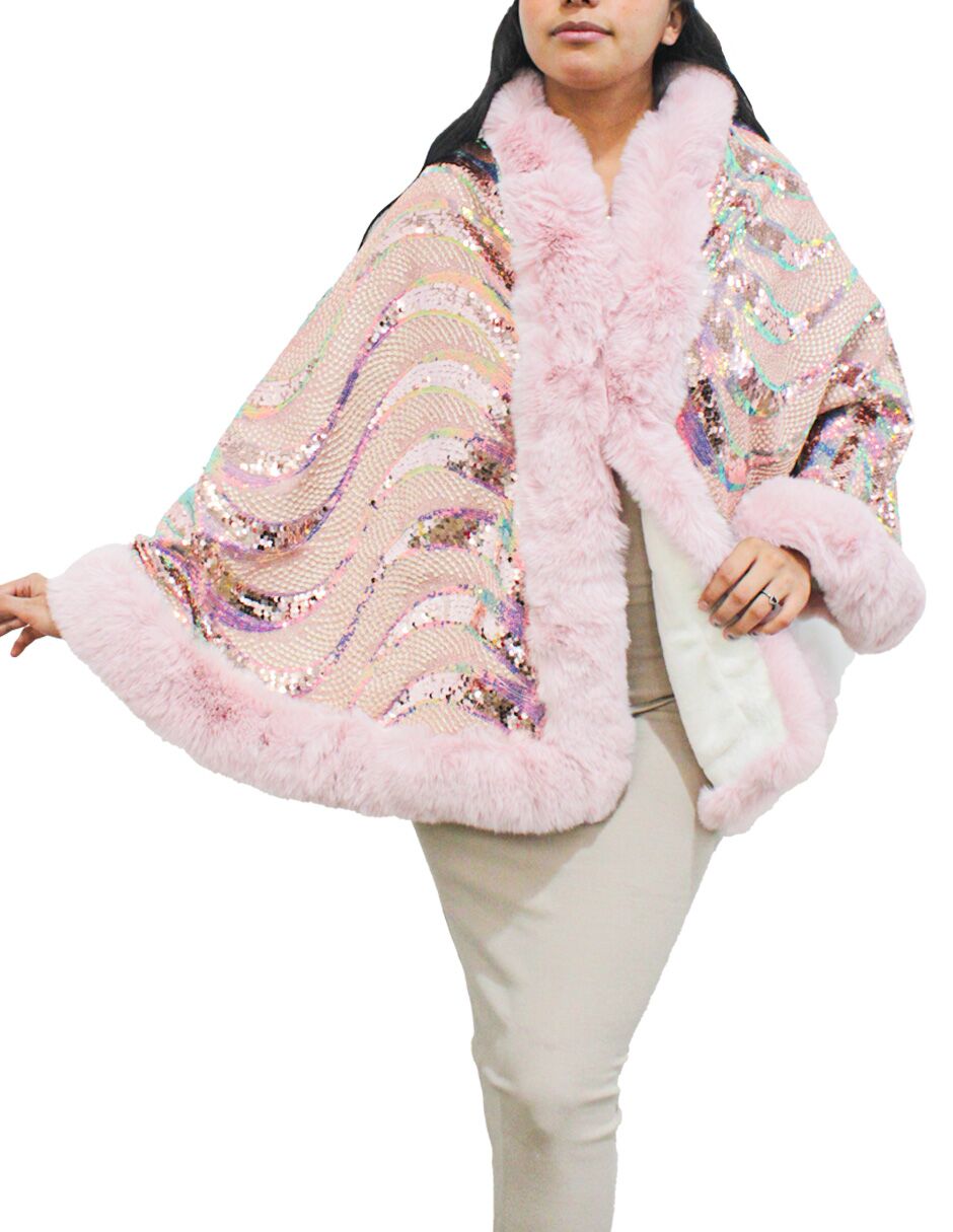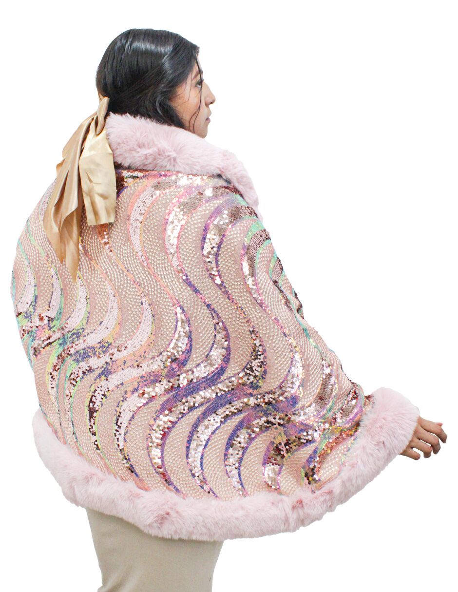 Capa de invierno rosa con orilla de peluche y lentejuelas de 96x74x0.1cm