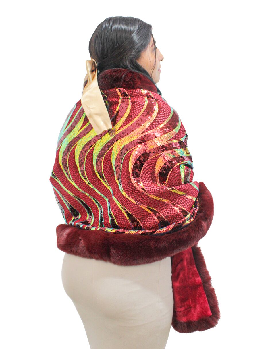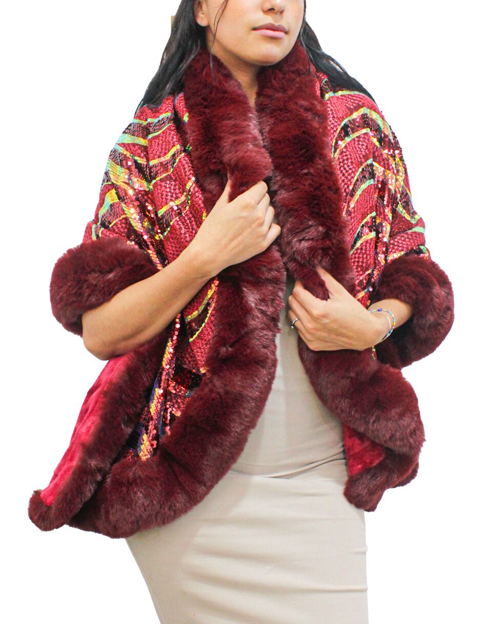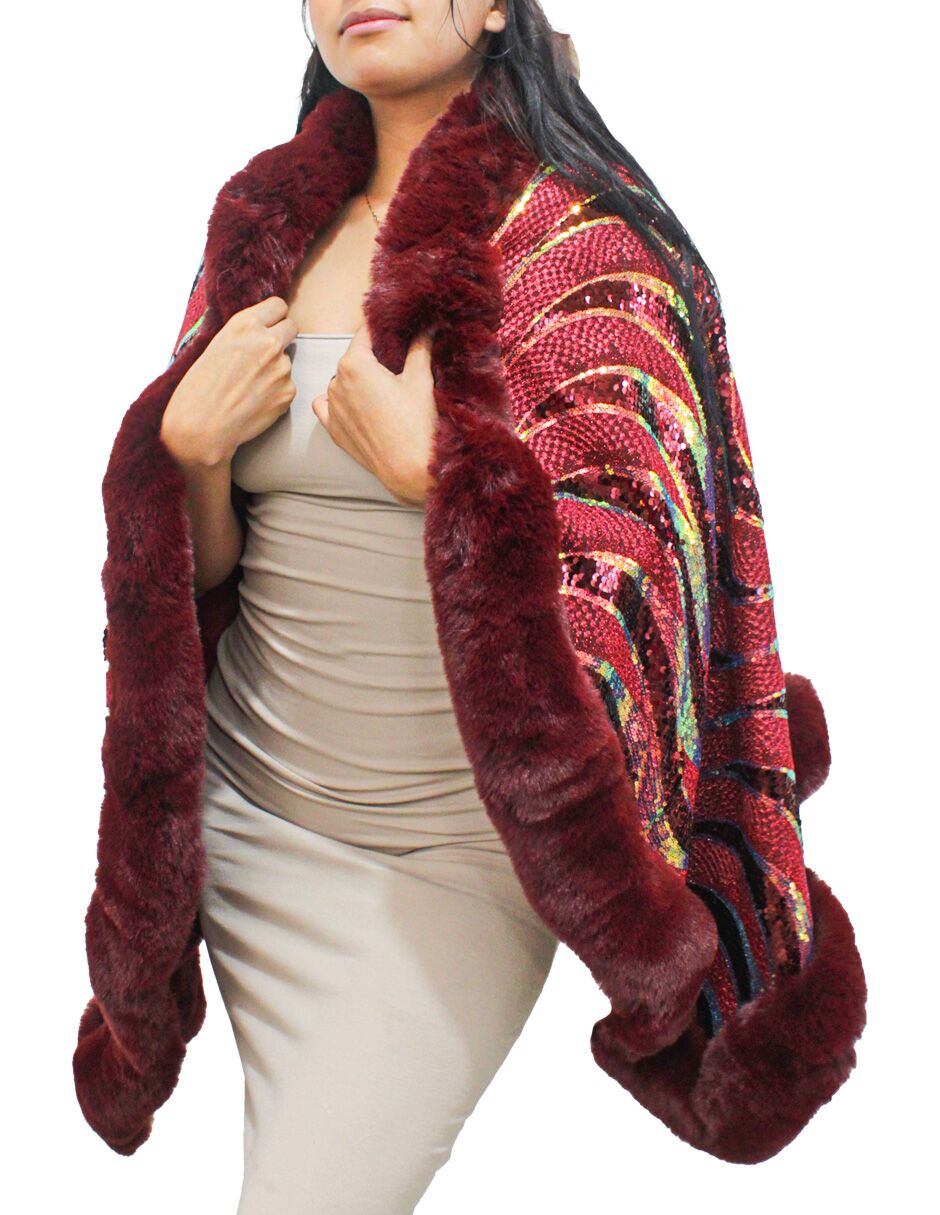 Capa de invierno vino con orilla de peluche y lentejuelas de 96x74x0.1cm