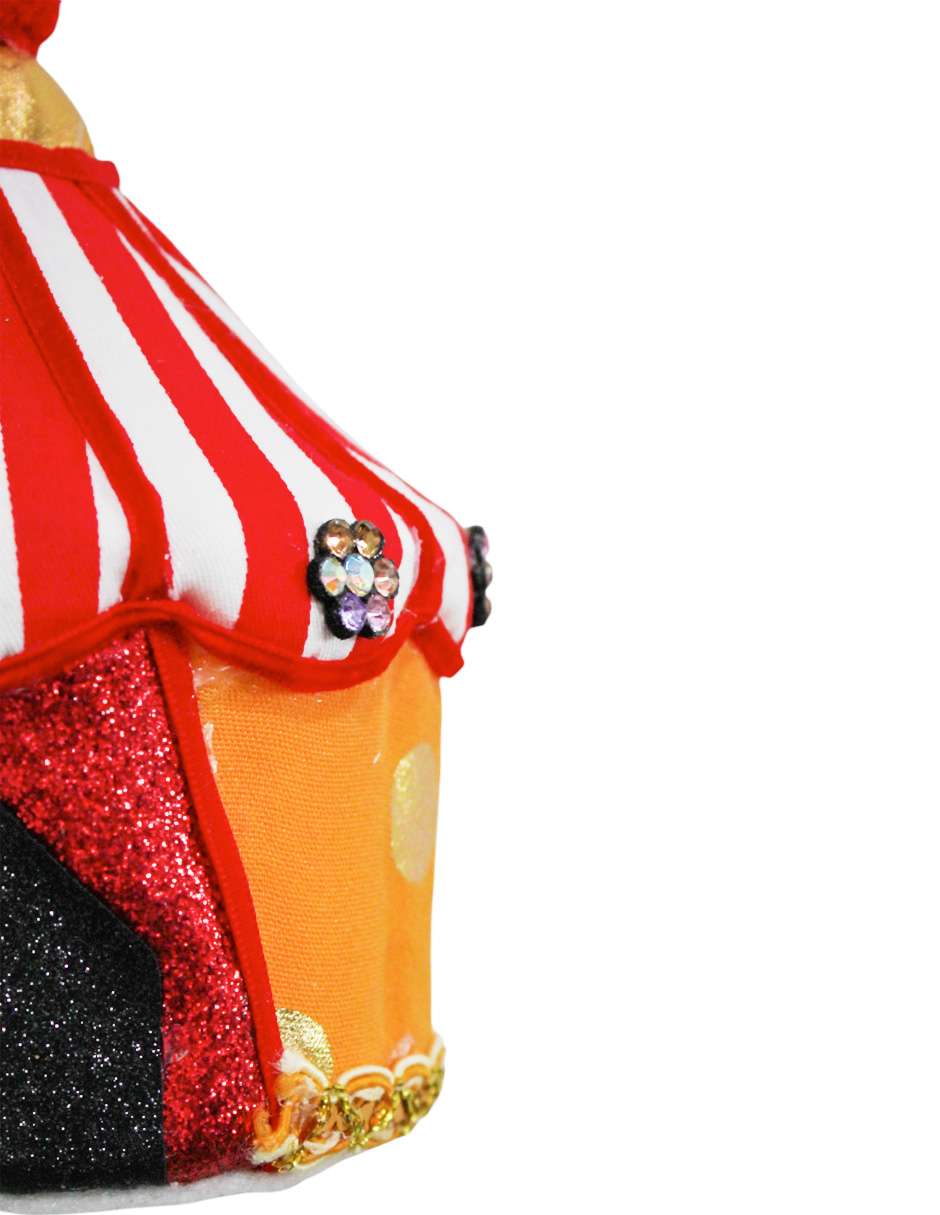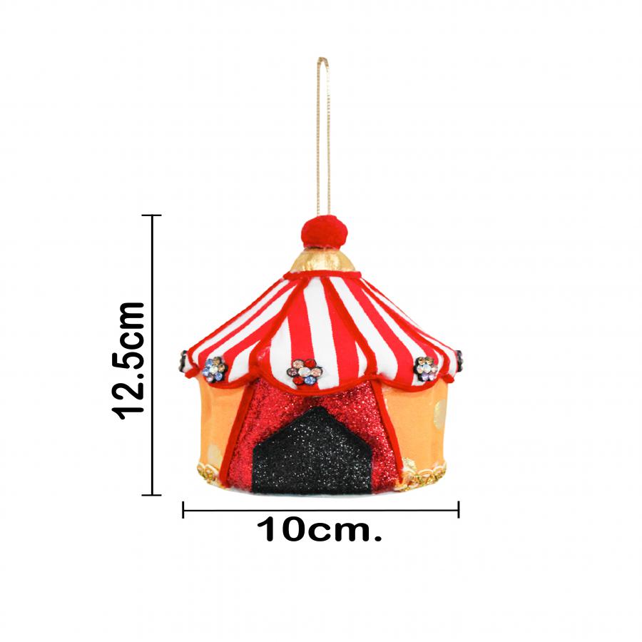 Siente la emoción del circo con esta adorable carpa de circo decorativa. Un diseño único que te hará sentir la alegría y la magia de un espectáculo. Medidas: 11x11x13 cm.
