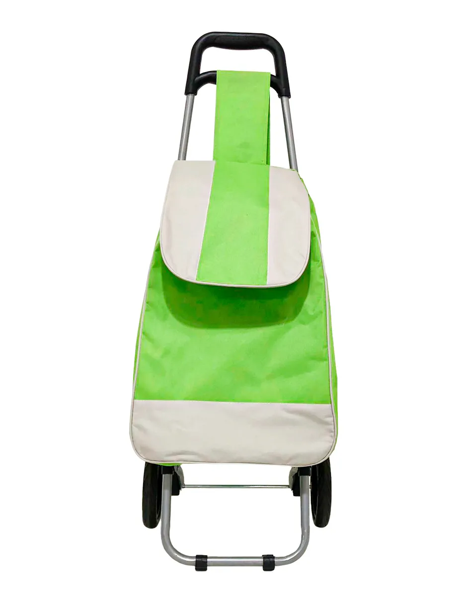Carro de mandado con un diseño de patrón limpio en colores blanco y verde. Un estilo moderno y discreto que ofrece gran capacidad. El material es metal y tela sintética. Medidas: 35 x 28 x 95 cm.