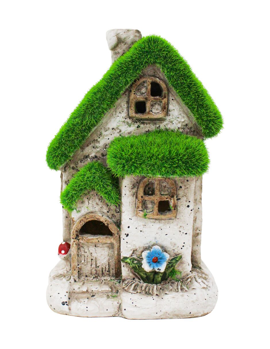 Casa de árbol de poliresina con techo verde de 12.5x11x18.5cm