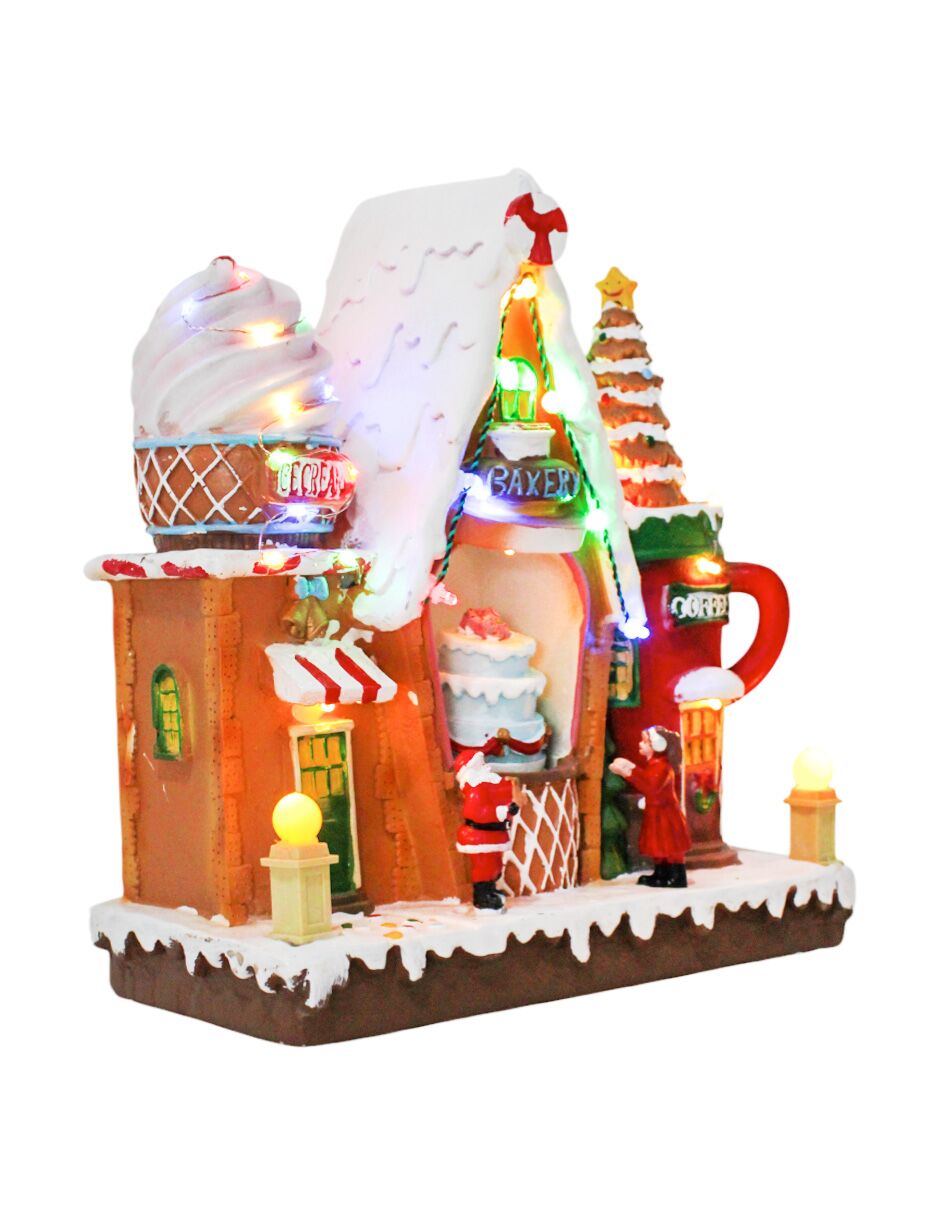 La magia de la Navidad en una pieza. Esta Casa de pan con Santa en movimiento, luz y sonido es ideal para crear una atmósfera festiva. Con sus medidas de 25x11x24.5cm y el uso de 3 pilas AA (no incluidas), es ideal para un hogar que busca un toque de magia.