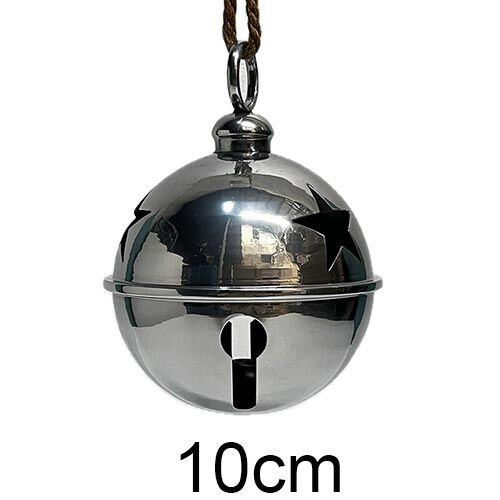 Elegante cascabel de metal con un acabado cromado y diseño calado de estrellas. Medidas: 50 cm. Su acabado de espejo y brillo intenso son perfectos para añadir un toque de lujo, modernidad y gran distinción a tu decoración.