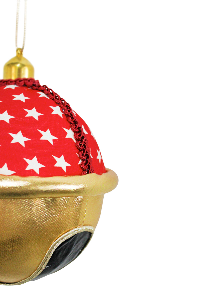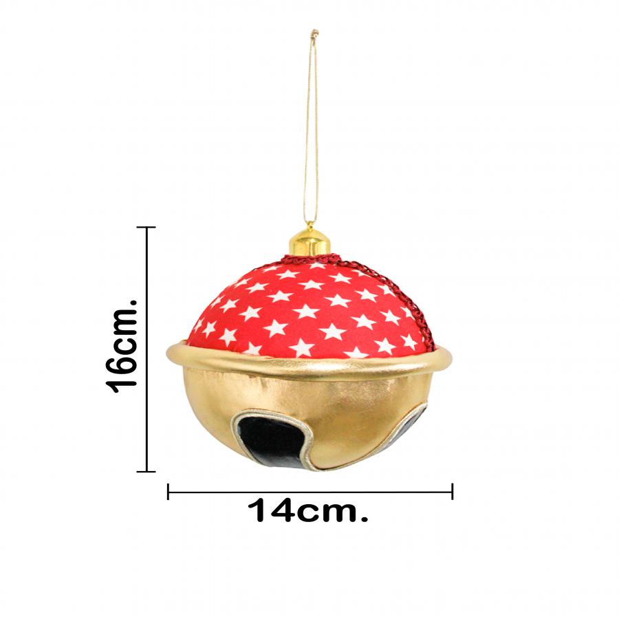 Siente la magia de la Navidad con este festivo cascabel decorativo rojo. Con estrellas blancas y una base dorada, te hará sentir la alegría y la tradición de la temporada. Medidas: 14x14x15 cm.