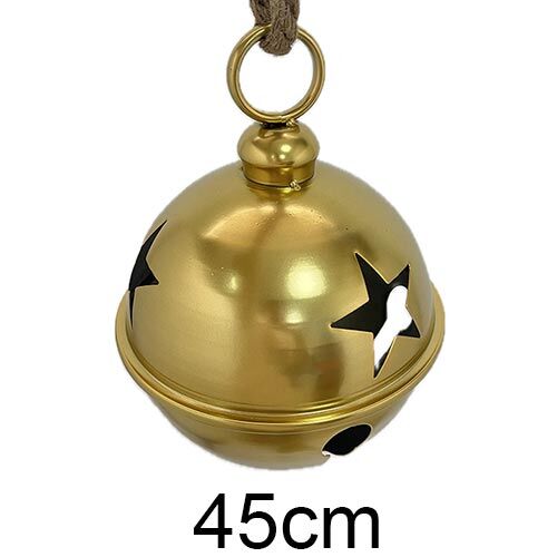 Cascabel de metal con un lujoso acabado en color dorado brillante y un delicado diseño calado de estrellas. Aporta un toque festivo y clásico de gran distinción.