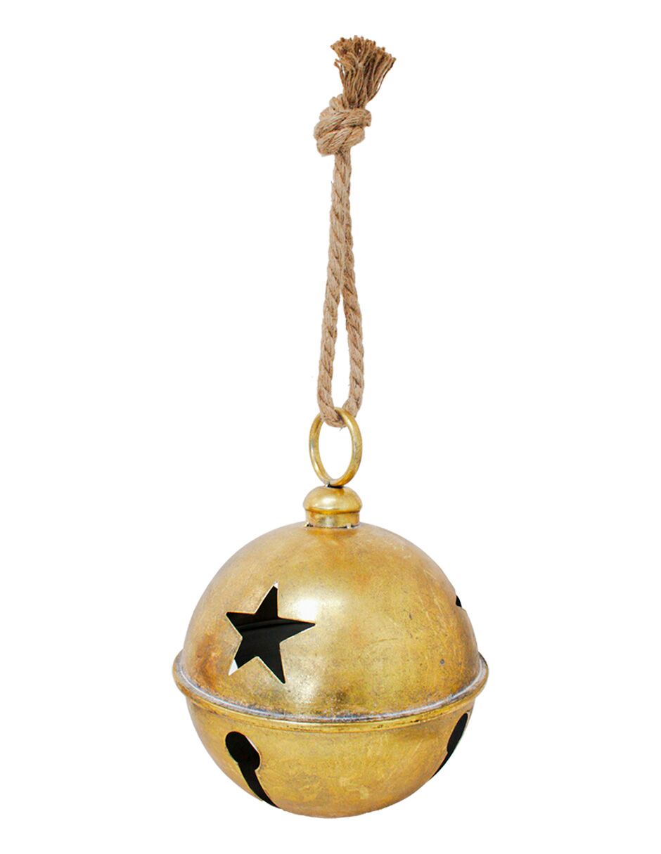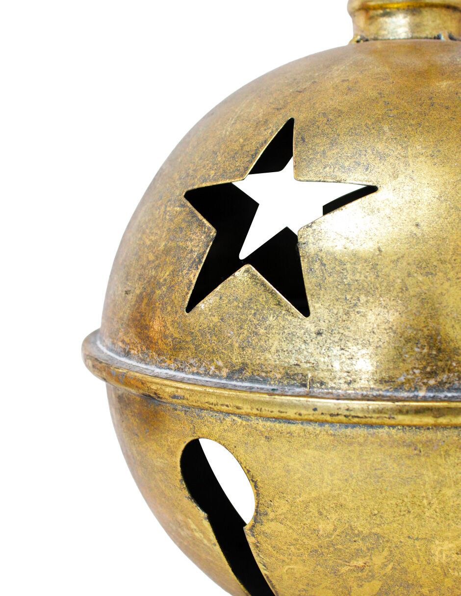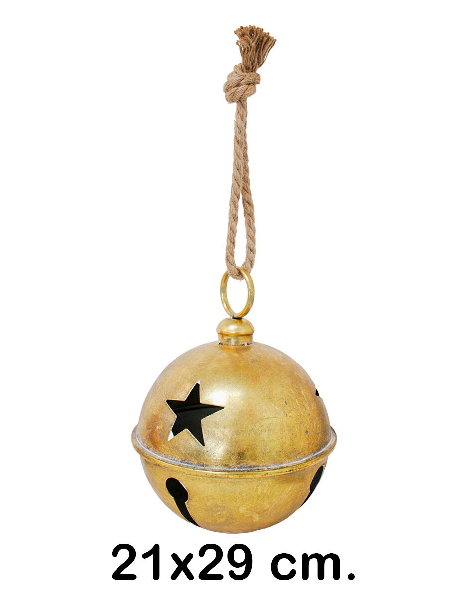 Elegante cascabel de metal con acabado dorado y diseño calado de estrellas. Medidas: 10 cm. Su color clásico y el efecto luminoso que crea son perfectos para añadir un toque de lujo y gran distinción a tu decoración.