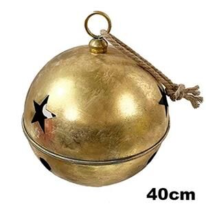 Cascabel de metal con un acabado dorado con toque vintage y diseño calado de estrellas. Medidas: 20 cm. Su gran tamaño, color clásico y el diseño rústico son ideales para crear un ambiente tradicional, cálido y lleno de encanto.
