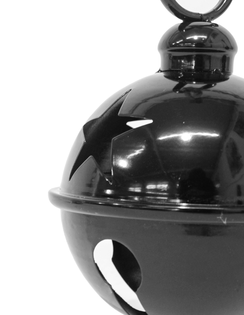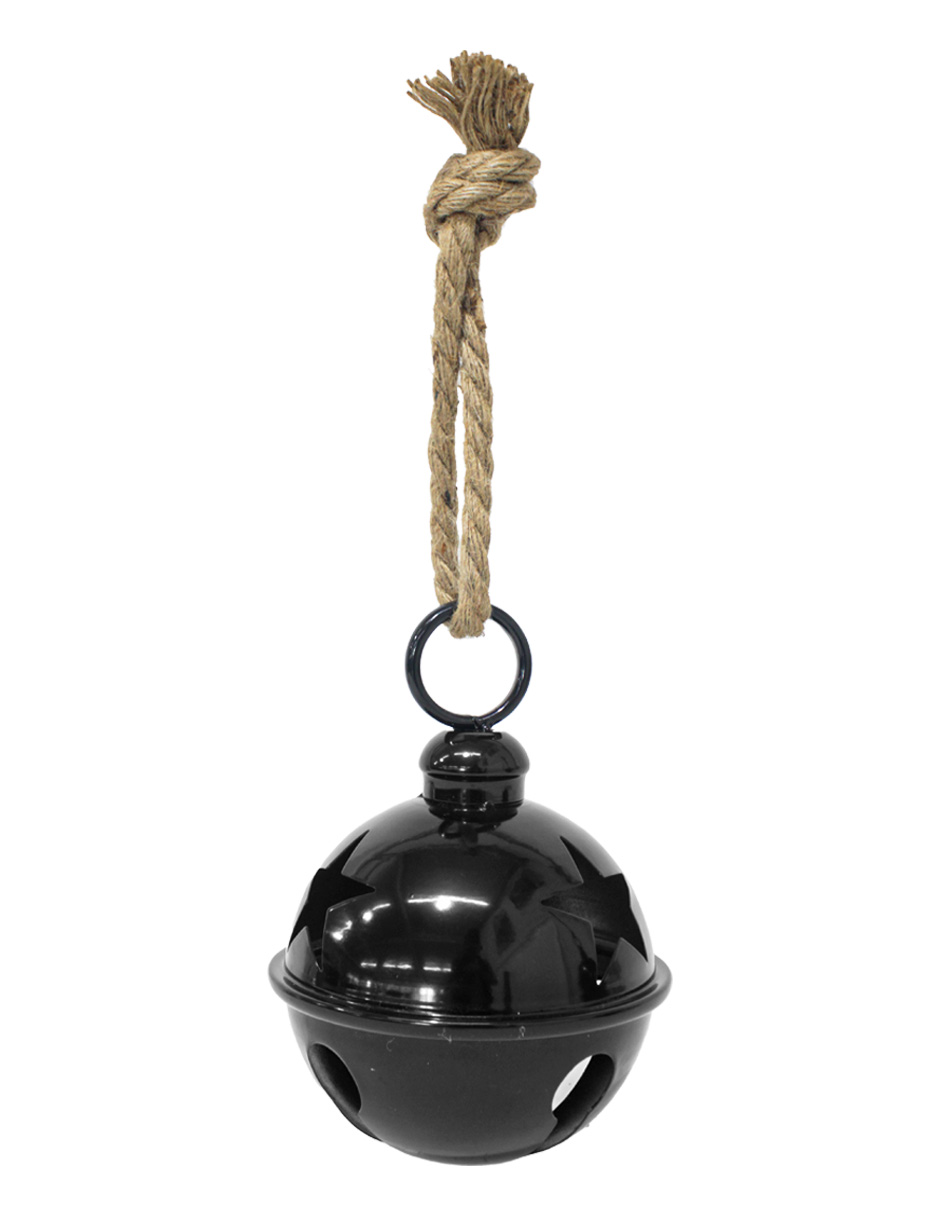 Elegante cascabel de metal con un acabado negro y diseño calado de estrellas. Medidas: 8 cm. Su color sobrio y diseño sofisticado añaden un toque de distinción y modernidad a tu decoración.