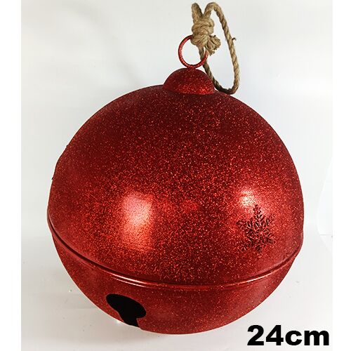 Cascabel decorativo de color rojo con un elegante acabado diamantado y un diseño de copo de nieve. Es perfecto para añadir un toque de lujo y magia invernal a tu decoración navideña. Material: metal. Medidas: 24x24x32cm.