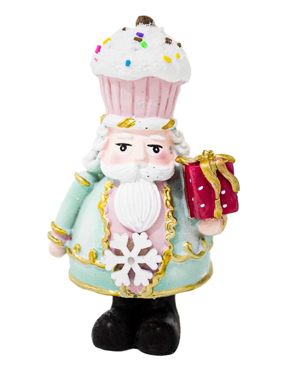 Cascanueces de poliresina con regalos rosa con dorado de8x6x13.5cm