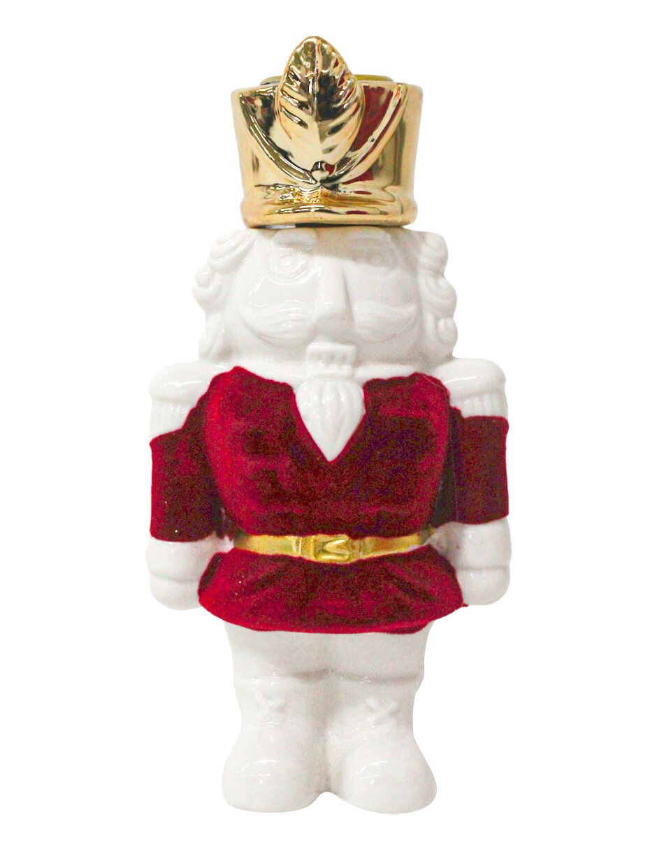 Innova la magia esta Navidad. Este adorable cascanueces de 8×5.5×16.2 cm, hecho de fina porcelana, es la pieza más encantadora para tu decoración. Con un delicado abrigo de terciopelo rojo y una corona dorada, irradia una presencia regia
