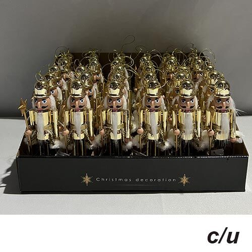 Cascanueces decorativo con la forma de un rey en un brillante color dorado. Ideal para dar un toque de lujo y festividad a tus espacios. Material: plástico. Medidas: 17cm.