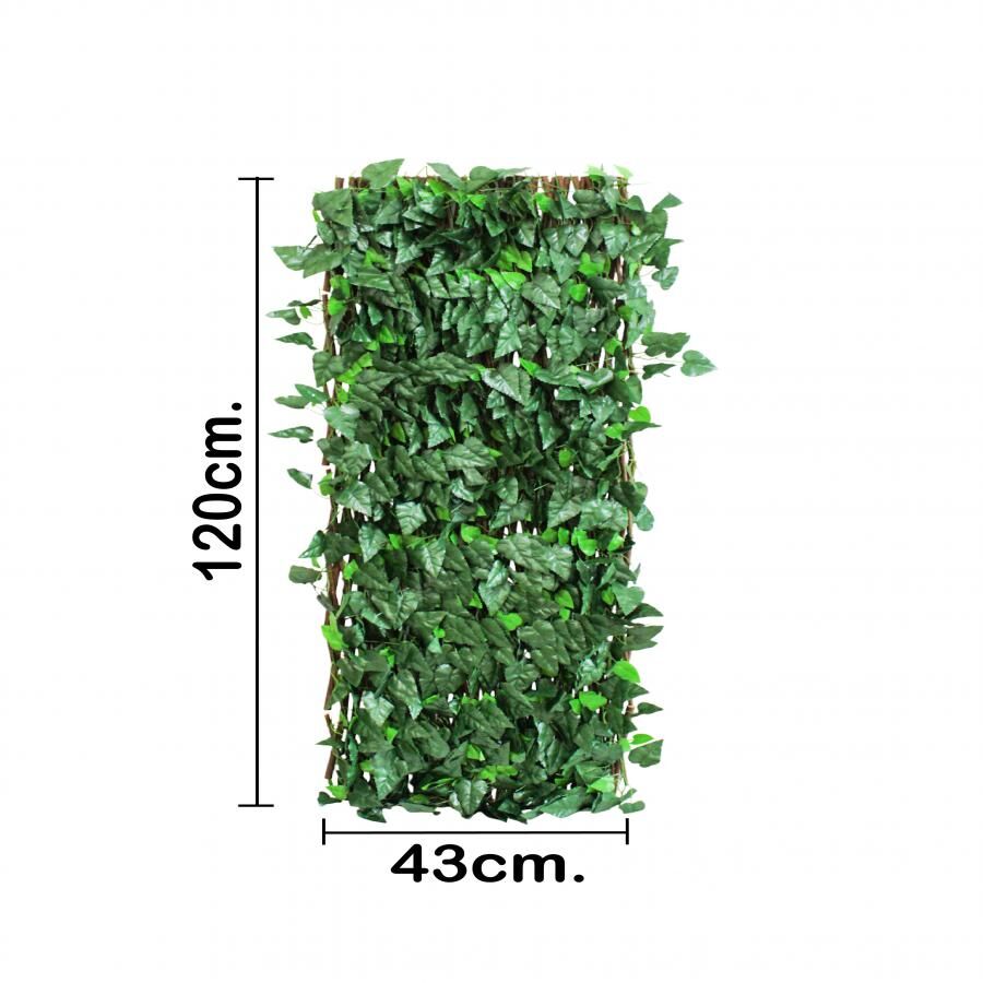 La Cerca de follaje verde es la pieza maestra para quien busca transformar muros vacíos o crear divisiones con una estética natural, combinando la flexibilidad de un enrejado extensible con la densidad de hojas de hiedra artificial, logrando una presencia visual refrescante en tu espacio de convivencia. Este producto ofrece una sofisticación orgánica incomparable, funcionando como la solución perfecta para aportar vida, sombra y una nota de diseño biofílico a cada rincón de tu hogar sin necesidad de mantenimiento. Su sola presencia ayuda a elevar la sensación de tranquilidad y frescura de tu ambientación de manera inmediata. Lo logra mediante su diseño detallado de red de madera natural adornada con cientos de hojas sintéticas en diversos matices de verde, lo que evoca la exuberancia de los jardines verticales en nuestra categoría de Flores.
