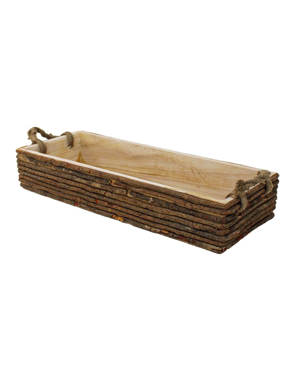 Charola rectangular de madera con corteza natural de 61x24x12cm