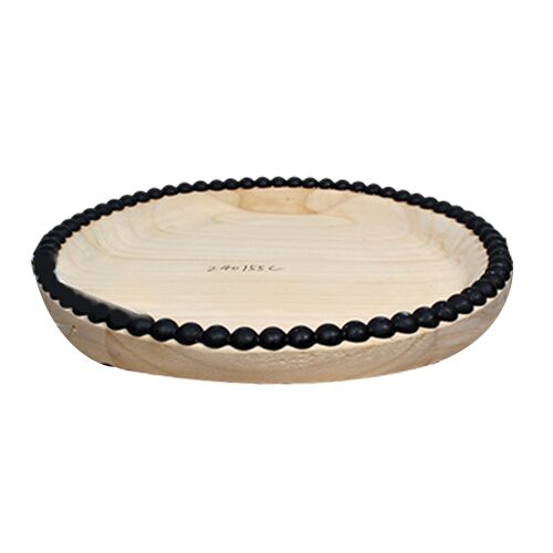 Un toque de sofisticación para tu mesa. Esta charola redonda de madera natural de 35x35x4cm con cuentas negras en la orilla es el acento perfecto para cualquier decoración. Ideal para servir aperitivos o para crear un centro de mesa audaz.