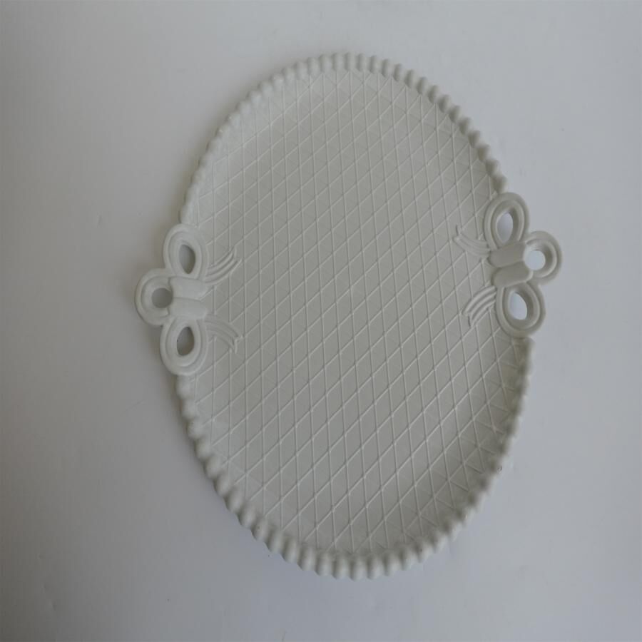 Charola redonda de plastico diseño rombos blanco de 37.2×32.5x2cm