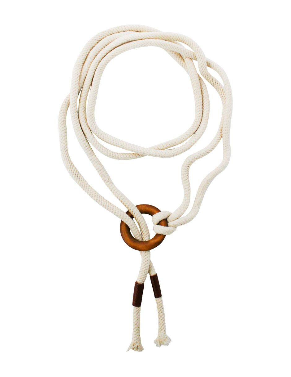 Cinturón de cuerda blanco con hebilla de madera de 5x120x0.1cm