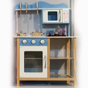 Original cocinita infantil de madera con un divertido diseño de estilo náutico o marítimo. Medidas: 60 x 27 x 83 cm. Fomenta el juego de roles y la aventura.