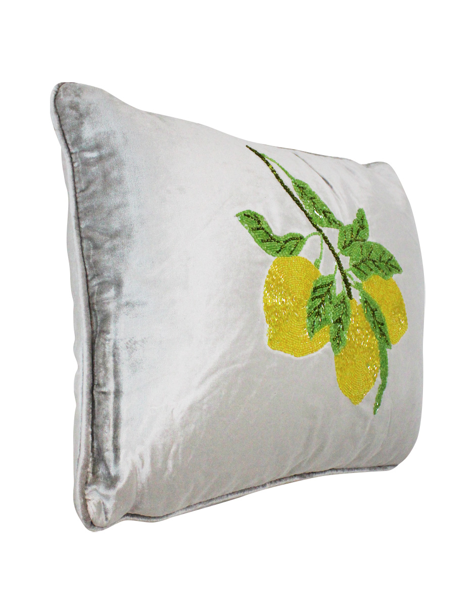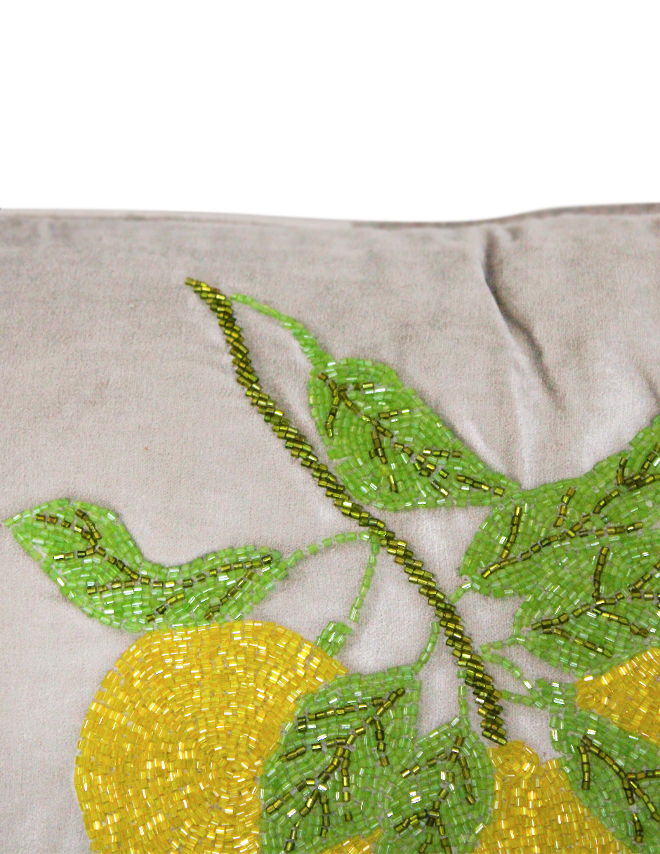 El Cojín Limones Chaquiras Beige irradia frescura vital y estilo mediterráneo. Este Cojín Limones Chaquiras Beige no solo es un cojín, sino una pieza que infunde alegría y luminosidad en tu sala. Siente el encanto de la tela Beige, pues el majestuoso bordado de Chaquiras dibuja un vibrante estampado de Limones, símbolo de vitalidad y verano, perfecto para un ambiente ligero y chic. .