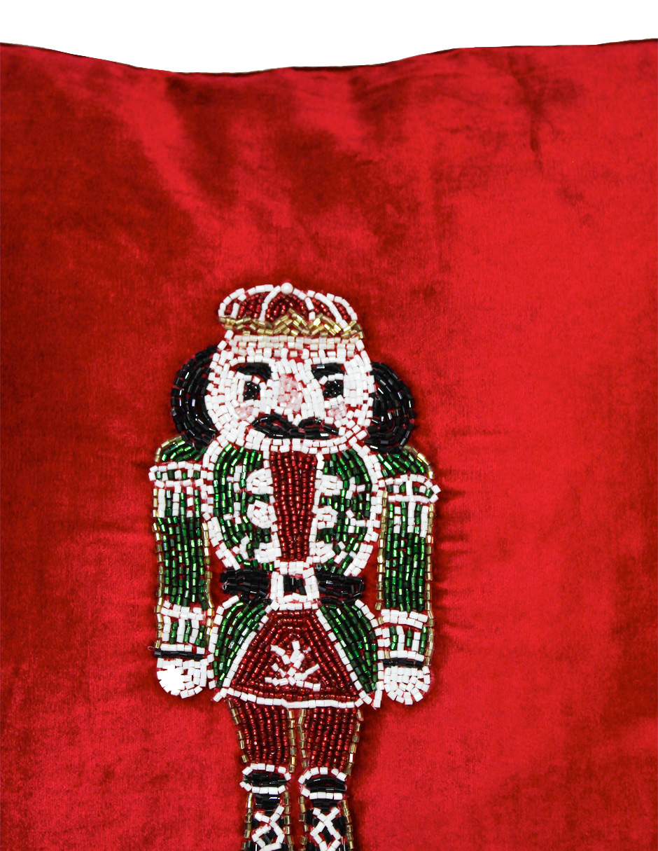 Primeramente, su fondo Rojo es una base potente que es ideal para sofás en tonos neutros, blancos o verdes profundos, creando un contraste icónico y teatral. Además, el diseño del Cascanueces crea un punto focal de fantasía que eleva la decoración a un estilo Navideño de Cuento de Hadas. Te recomendamos utilizar este Cojín Rojo Cascanueces Chaquiras Navidad combinándolo con cojines lisos en tono dorado, plateado o verde esmeralda. Es el balance perfecto entre la comodidad y la majestuosidad de un diseño artesanal.