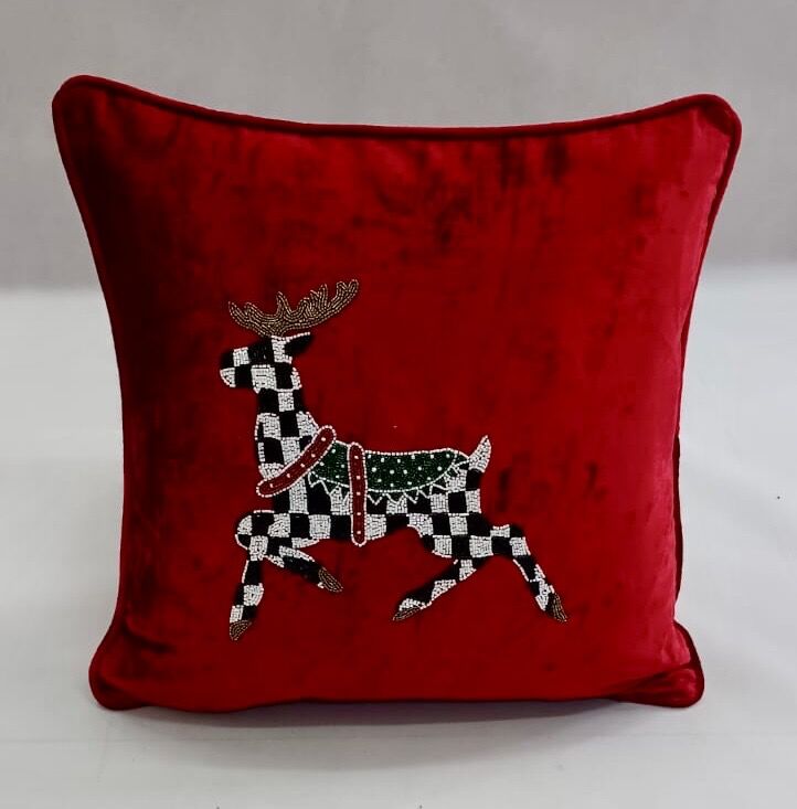 Cojín rojo estampado reno con chaquiras d e50x50x15cm
