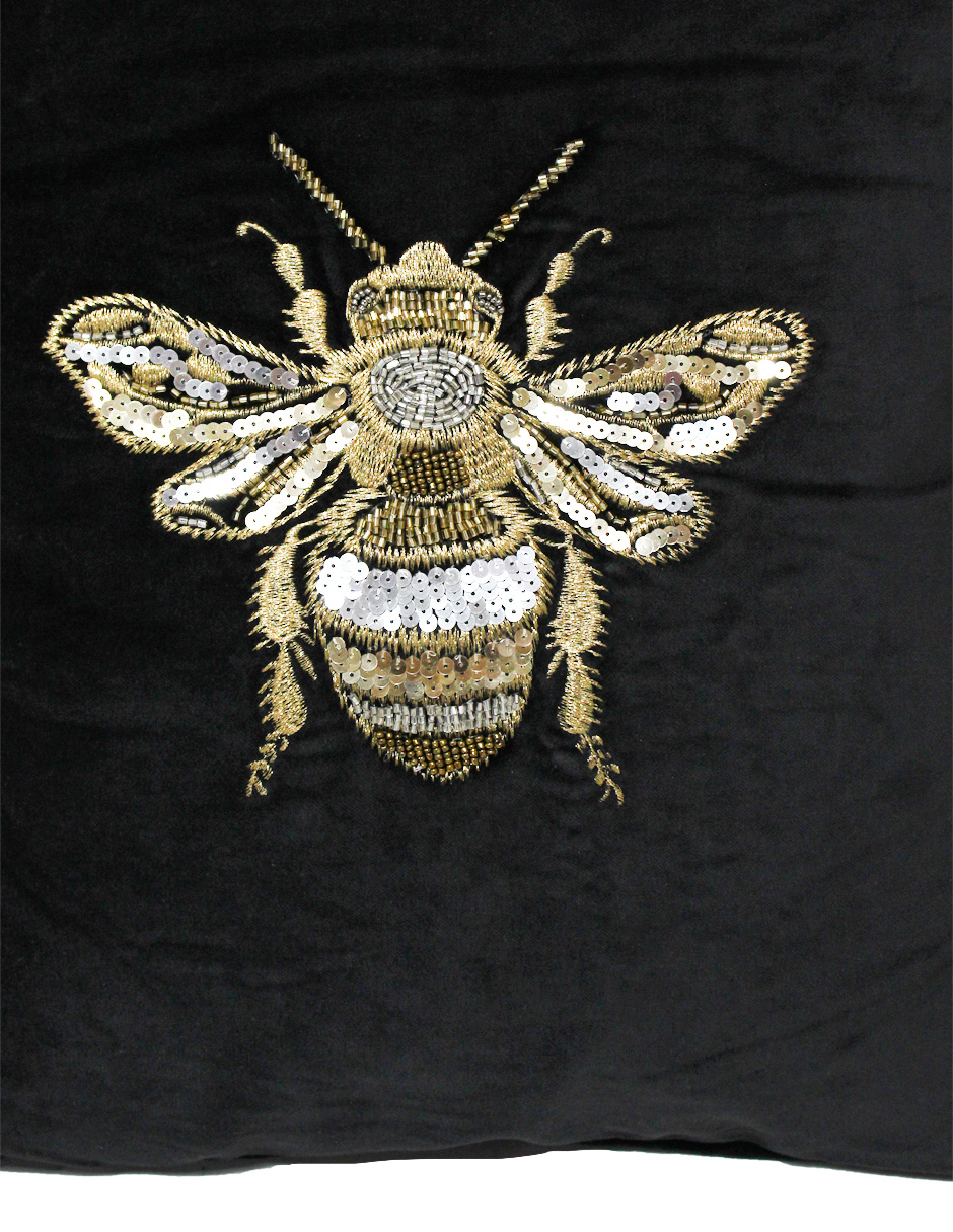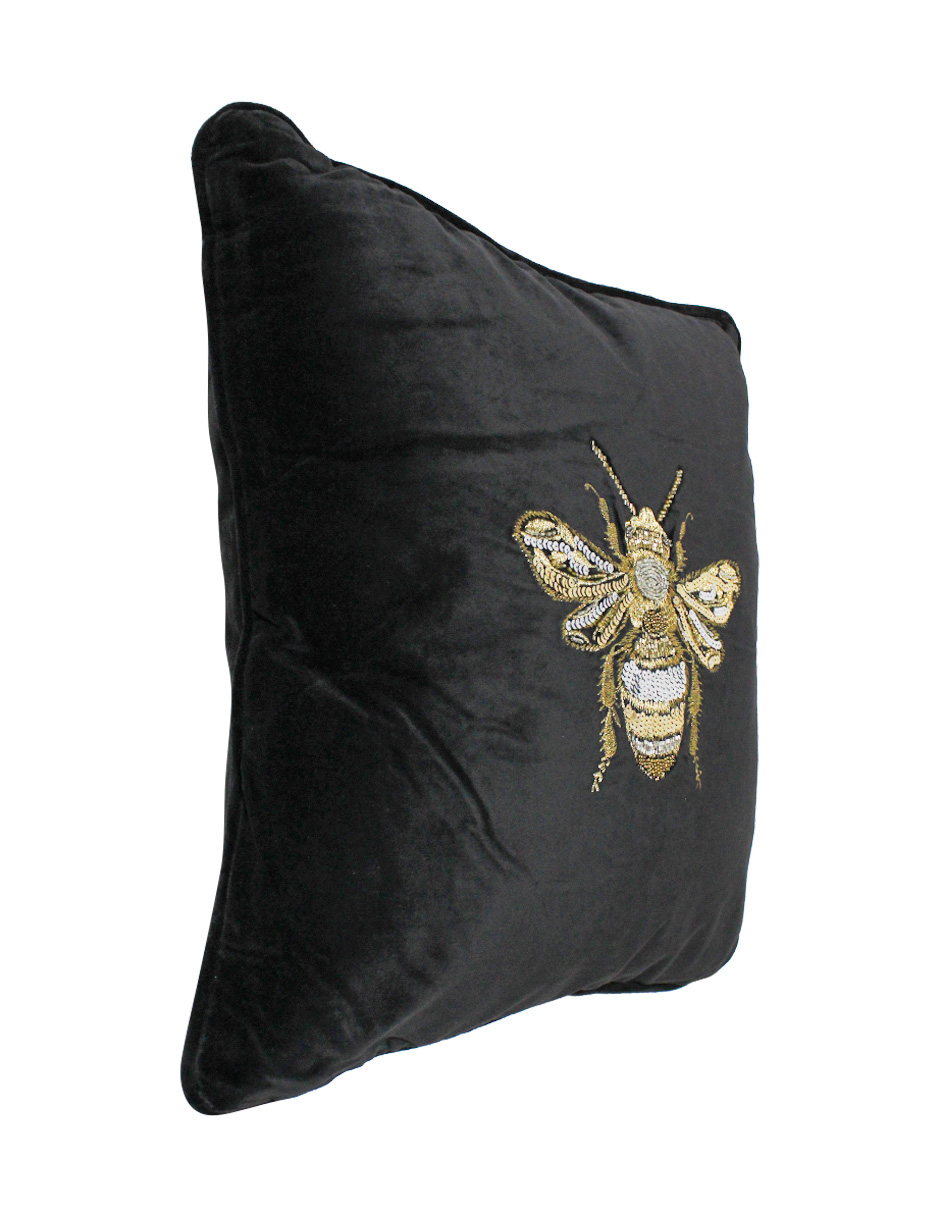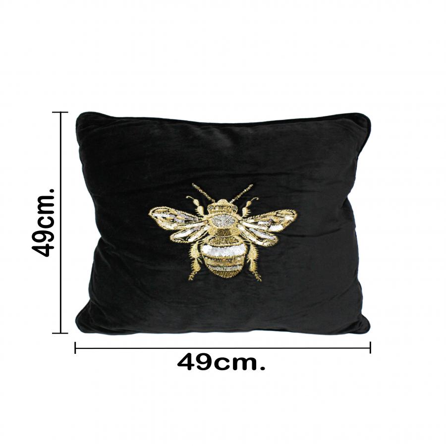 Primeramente, su fondo negro y el brillo metálico es ideal para sofás grises, cheslong blancos o asientos de terciopelo. Además, el diseño de la Abeja crea un punto focal de lujo que eleva la decoración a un estilo maximalista glamuroso. Te recomendamos utilizar este Cojín Tela Negra Abeja Dorada y Blanca Chaquiras combinándolo con cojines lisos en blanco, dorado o negro para un estilo consistente. Es el balance perfecto entre la comodidad y la majestuosidad de un diseño artesanal. .