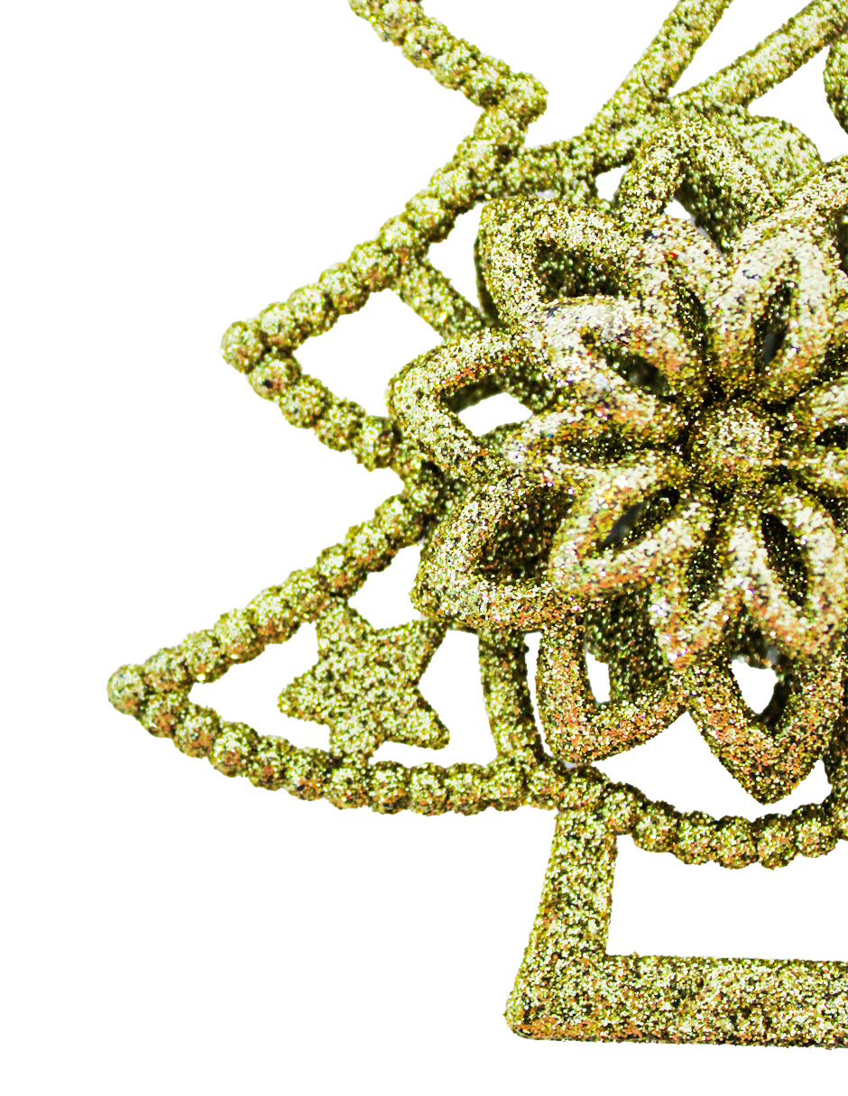 Colgante con forma de árbol con acabado de diamantina dorada. Ideal para añadir un toque lujoso y clásico a tu decoración.