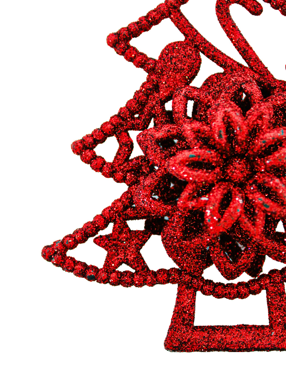 Colgante en forma de árbol en color rojo con acabado diamantado. Es perfecto para añadir un toque de brillo y elegancia a tu decoración navideña. Mide 10x16cm.