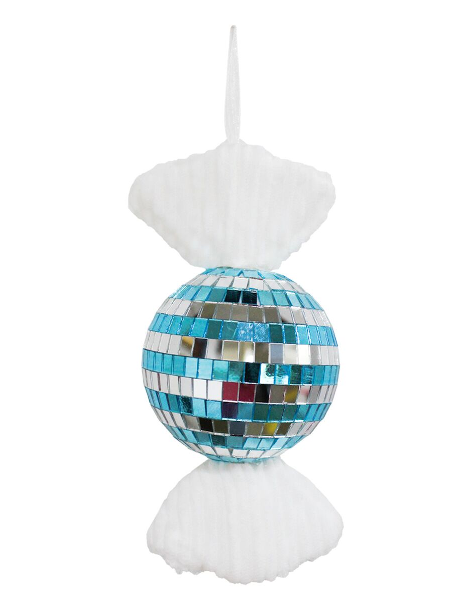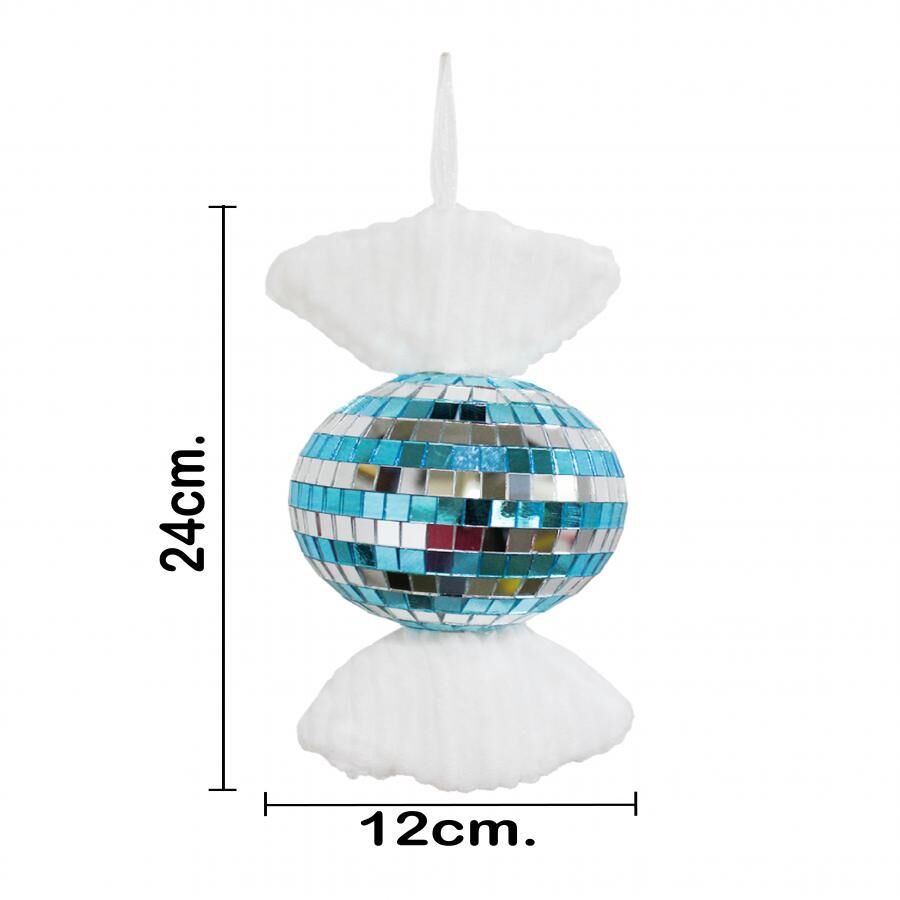 Siente la dulzura de la Navidad con este colgante “Caramelo Disco Ball”. Su combinación de colores azul y plata te hará sentir la alegría y la diversión. Es ideal para decorar tu árbol, guirnaldas o para complementar tus regalos, creando un ambiente festivo y original.