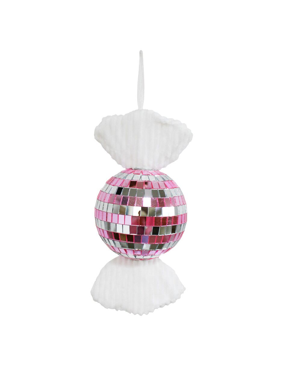 Siente la dulzura de la Navidad con este colgante “Caramelo Disco Ball”. Su combinación de colores rosa y plata te hará sentir la alegría y la diversión. Es ideal para decorar tu árbol o regalar, creando un ambiente festivo y original.