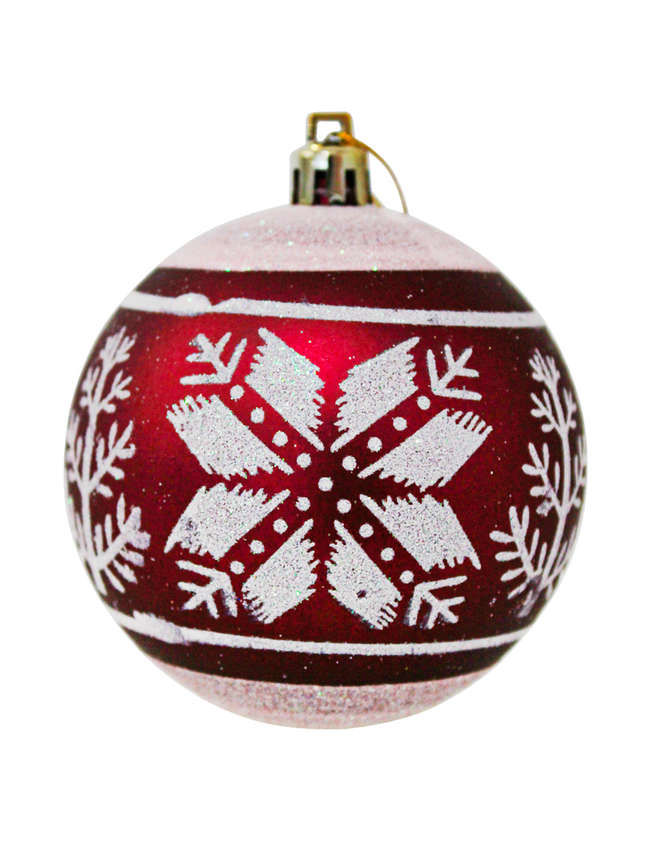 Set de 6 esferas que captura la esencia y la calidez de la tradición navideña con su clásico diseño de Nochebuena en vibrantes tonos rojo y blanco. Estas piezas son perfectas para inyectar un espíritu festivo y familiar a tu árbol o guirnaldas, creando un ambiente acogedor. Fabricadas en plástico con diseño estampado. Medidas: 8 cm (diámetro).