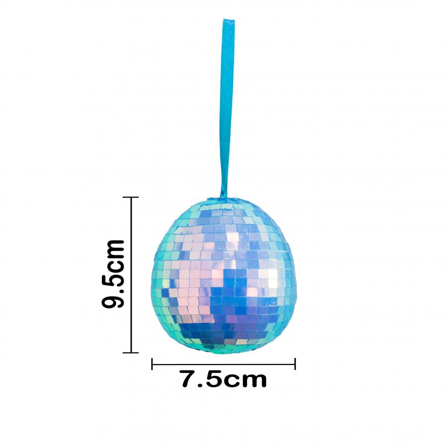 Para su Cuidado, basta con utilizar un paño de microfibra completamente seco para retirar el polvo y mantener el efecto iridiscente impecable. Es vital evitar el contacto con líquidos o productos químicos que puedan afectar el recubrimiento plástico del Huevo Disco Ball Azul Iridiscente. De igual importancia es manipularlo con suavidad para asegurar su máxima calidad.