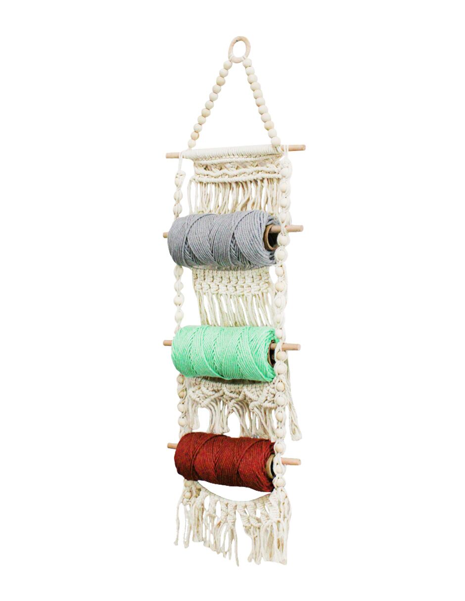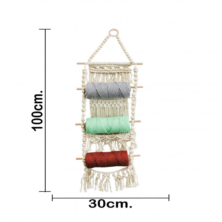Colgante de macramé con 3 carretes de hilos de colores de 9x30x100cm