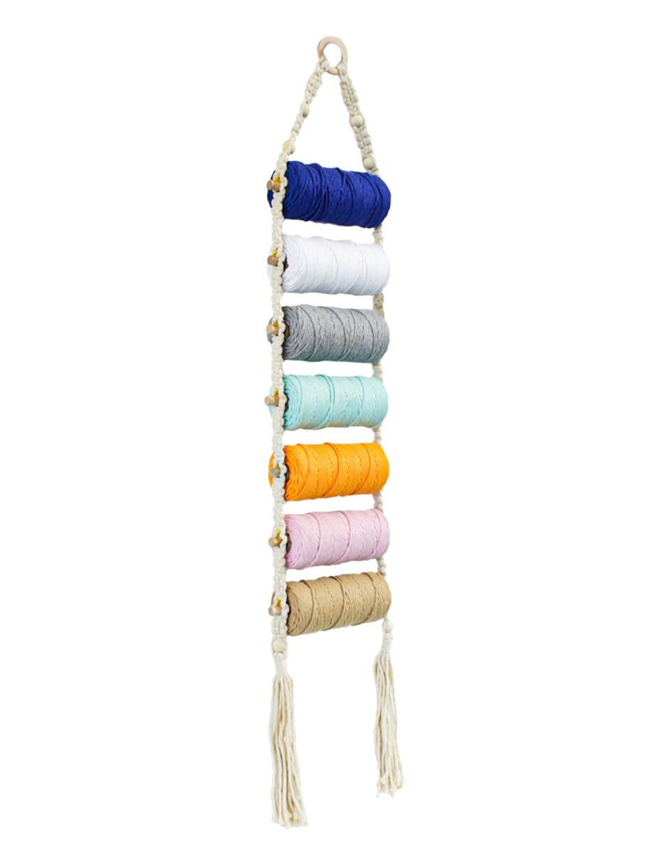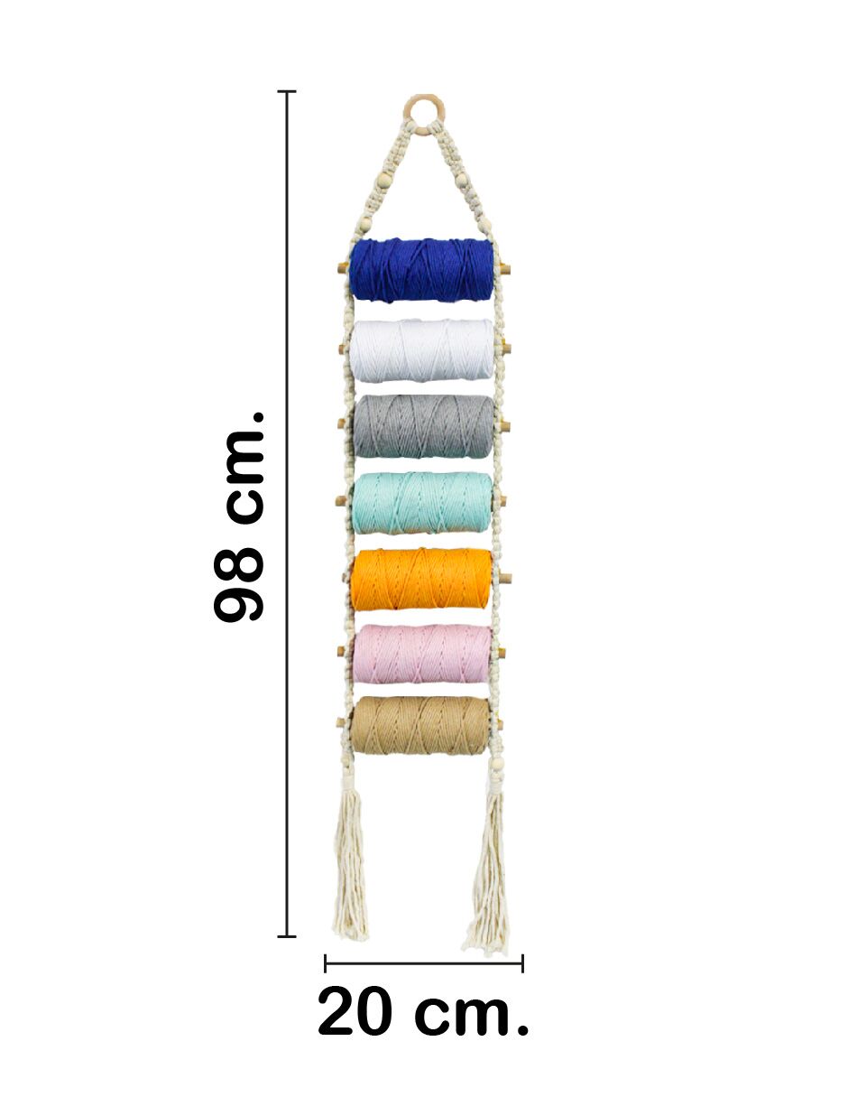 Colgante de macramé con 7 carretes de hilos de colores de 7x20x98cm