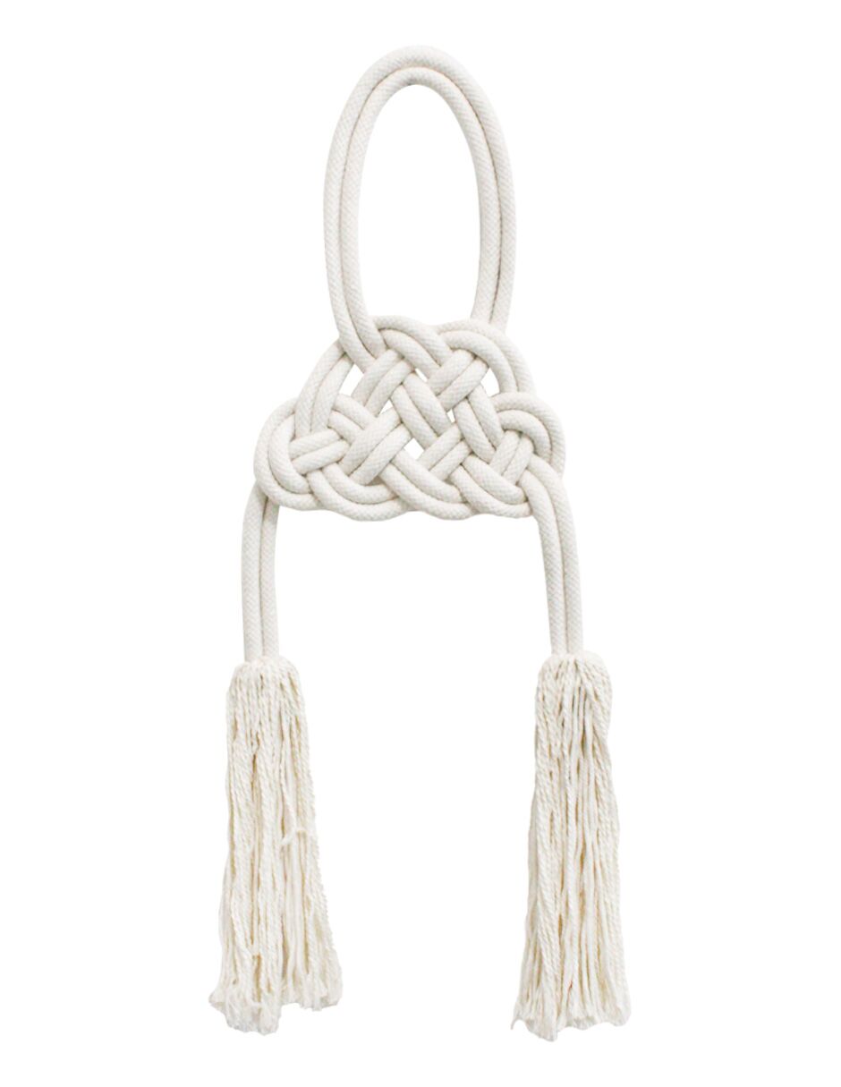 Colgante de macrame diseño nudos con borlas de 76x23x2cm
