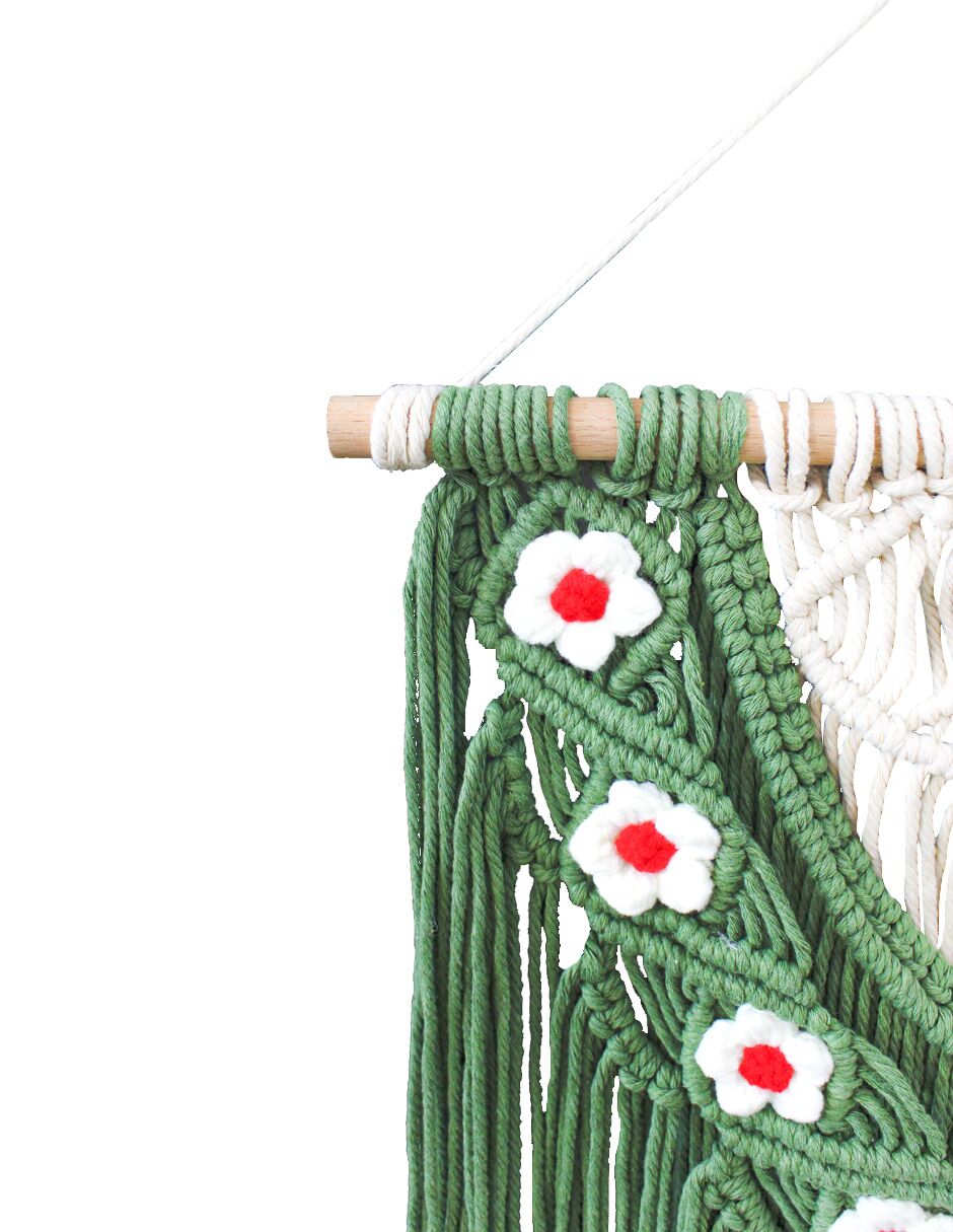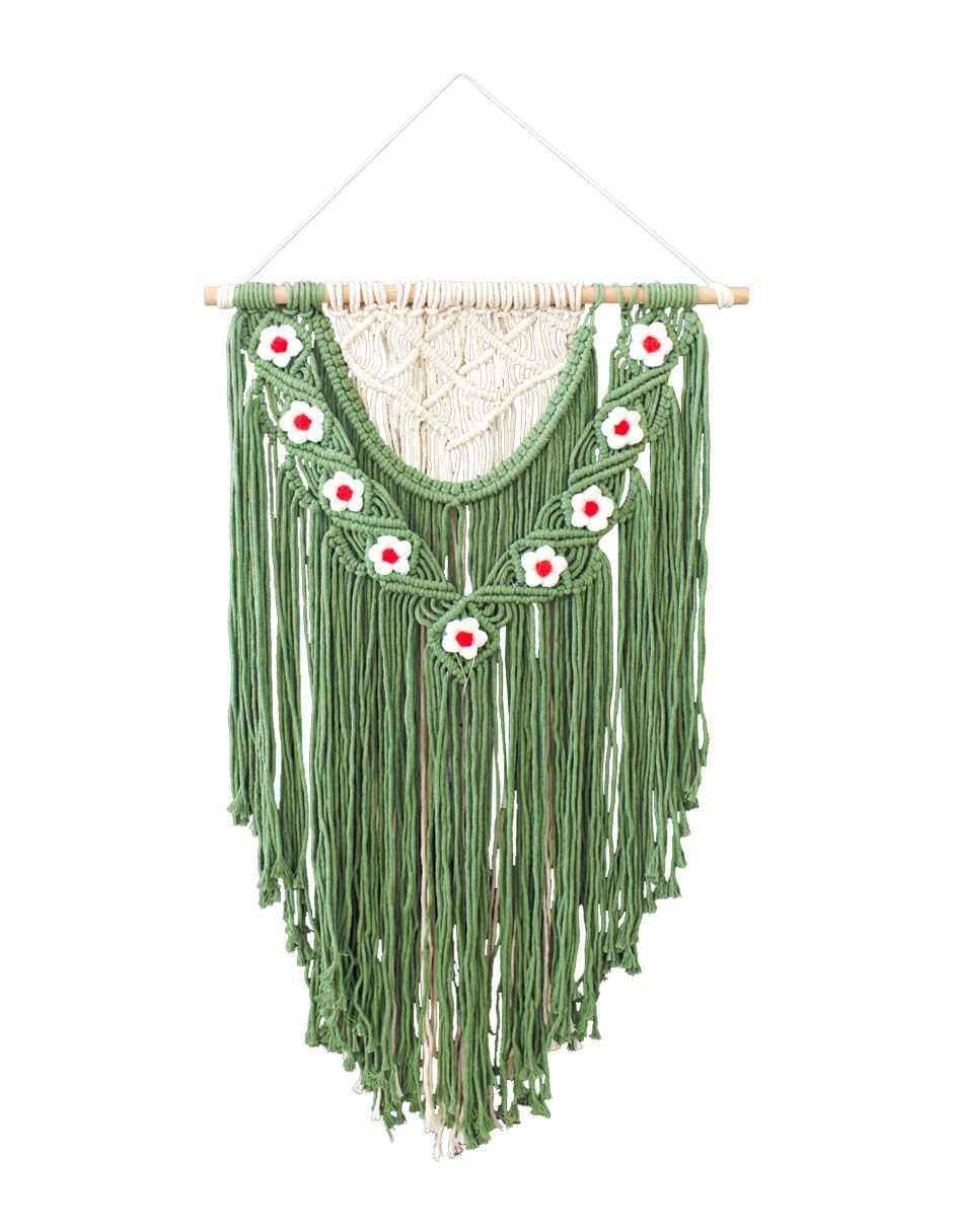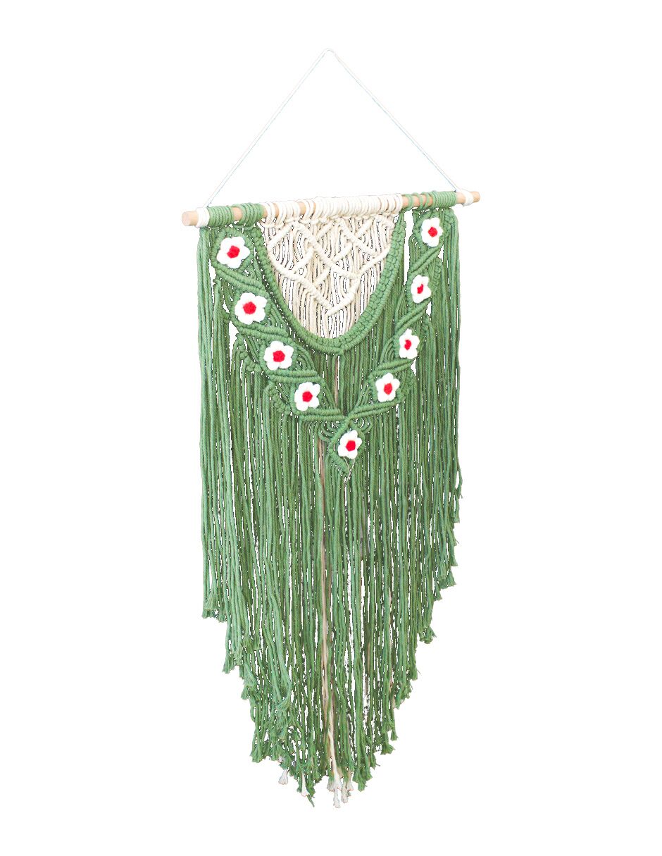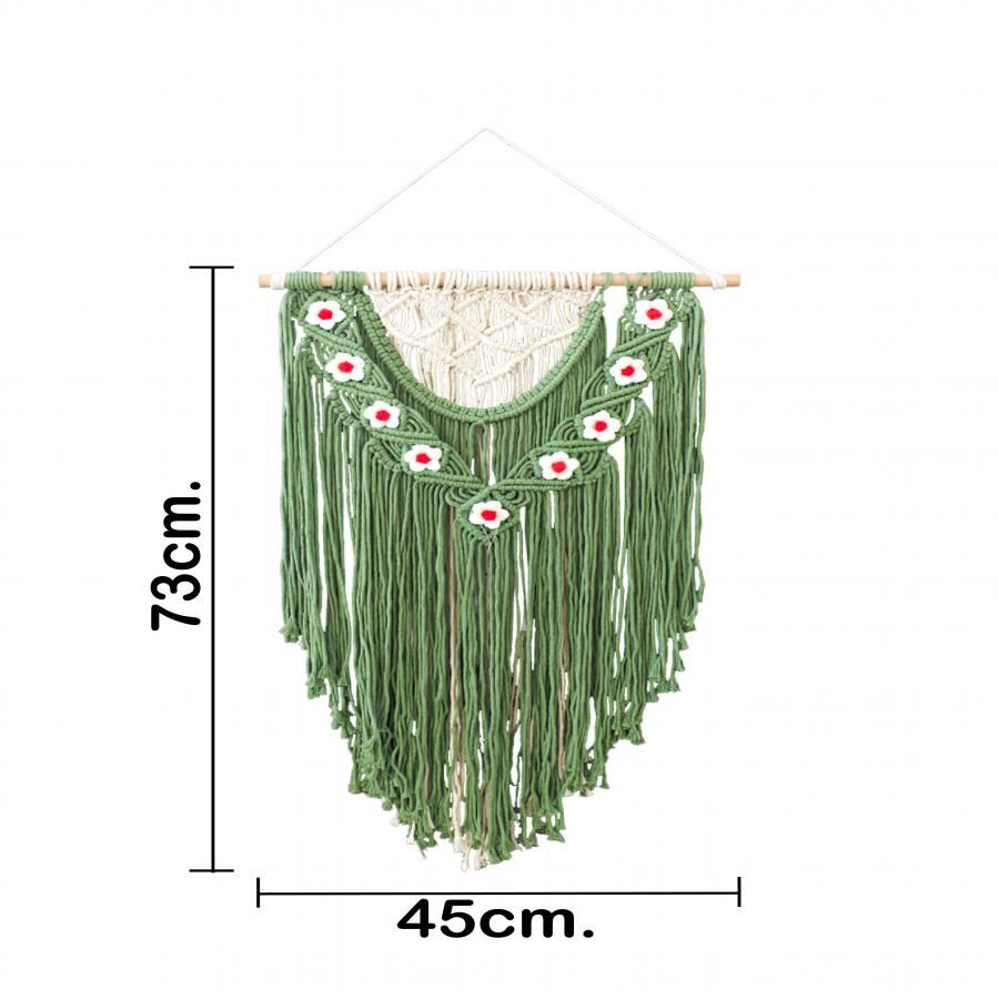 Colgante de macramé verde con flores de 1.5x45x73cm
