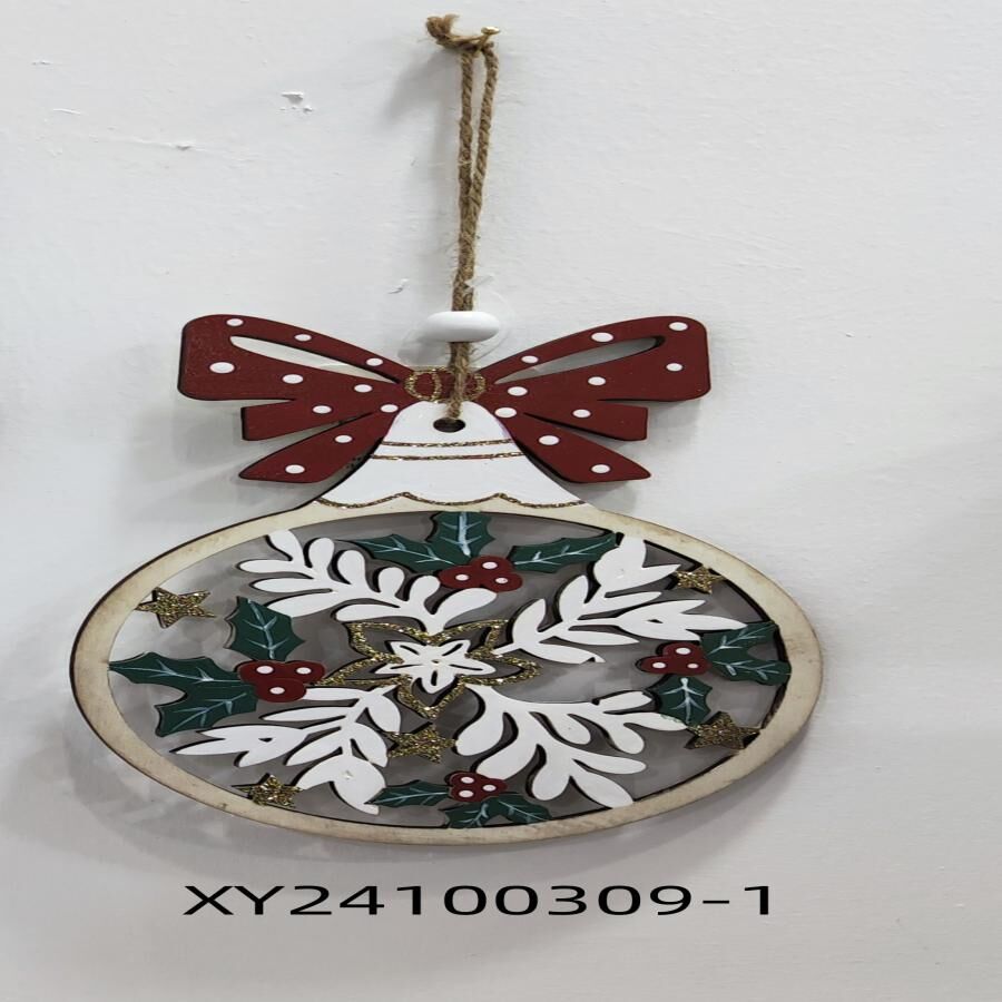 Un festivo colgante de madera con un moño rojo y muérdago, con medidas de 0.5x12x18.5 cm. Ideal para añadir un toque de tradición y encanto a tu decoración.