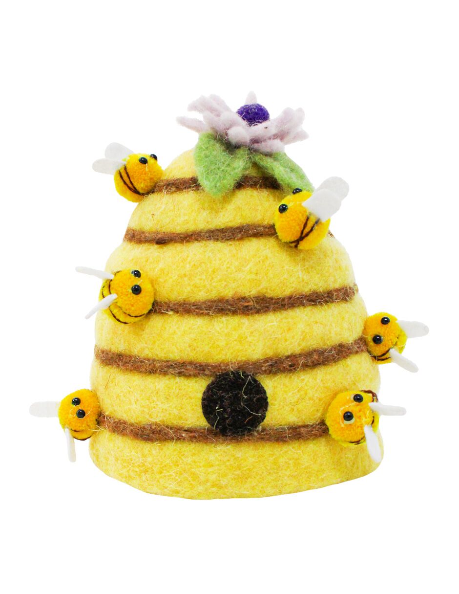 Colgante diseño panal de tela amarilla con abejas 12x12x16cm