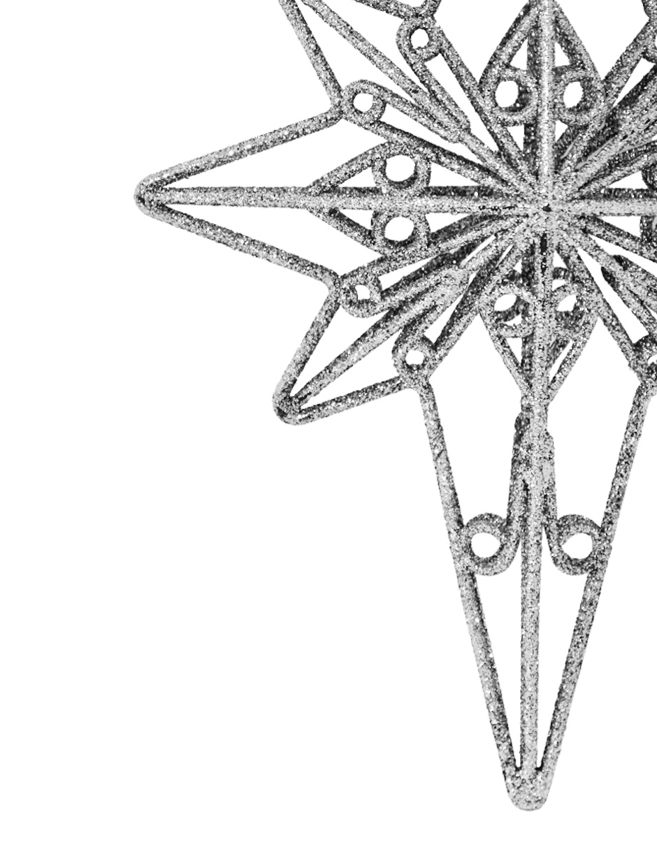 Colgante con forma de estrella en color plateado. Ideal para una decoración elegante, moderna y sutil.