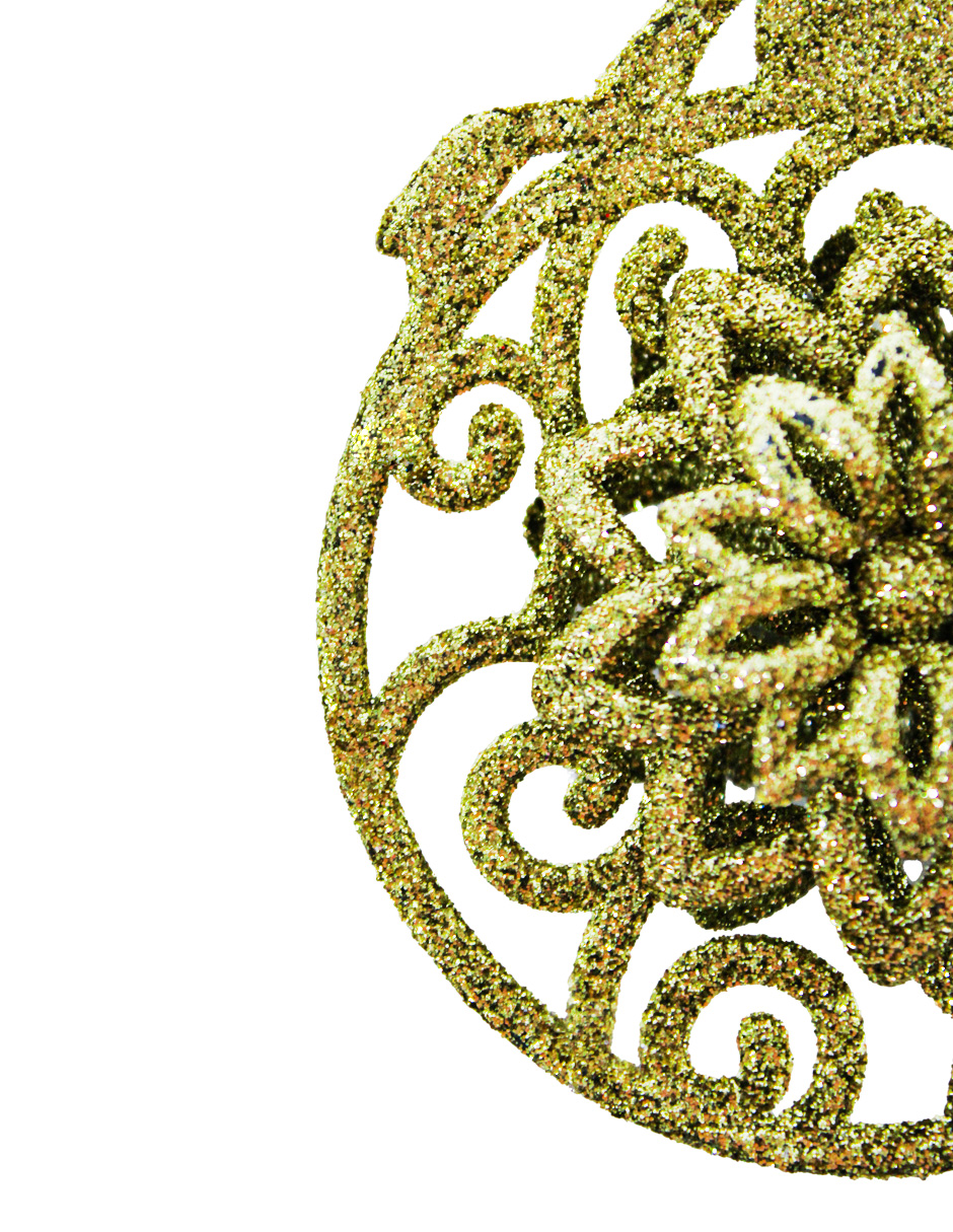 Colgante con forma de flor con acabado de diamantina dorada. Ideal para añadir un toque lujoso y clásico a tu decoración.