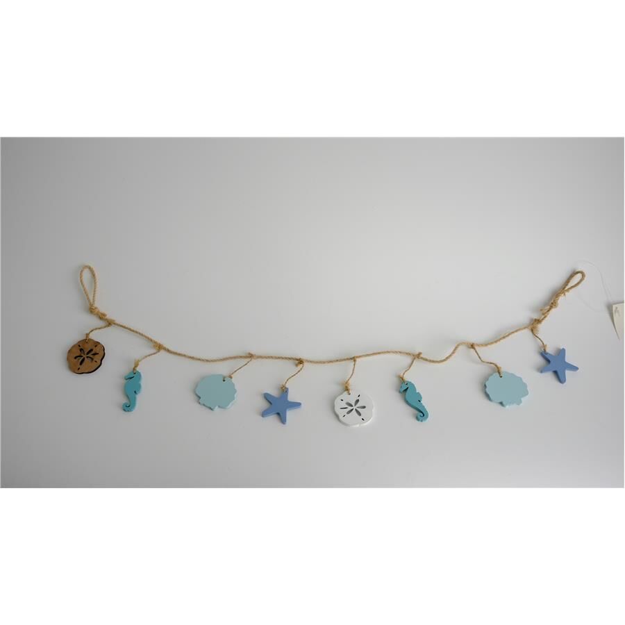 Colgante marino decorativo. Esta pieza es ideal para quienes buscan una decoración marinera y aventurera. Su diseño único evoca una sensación de frescura y tranquilidad, perfecta para crear un ambiente único y lleno de encanto. Material: metal, cuerda. Medidas: 84x9x1cm.