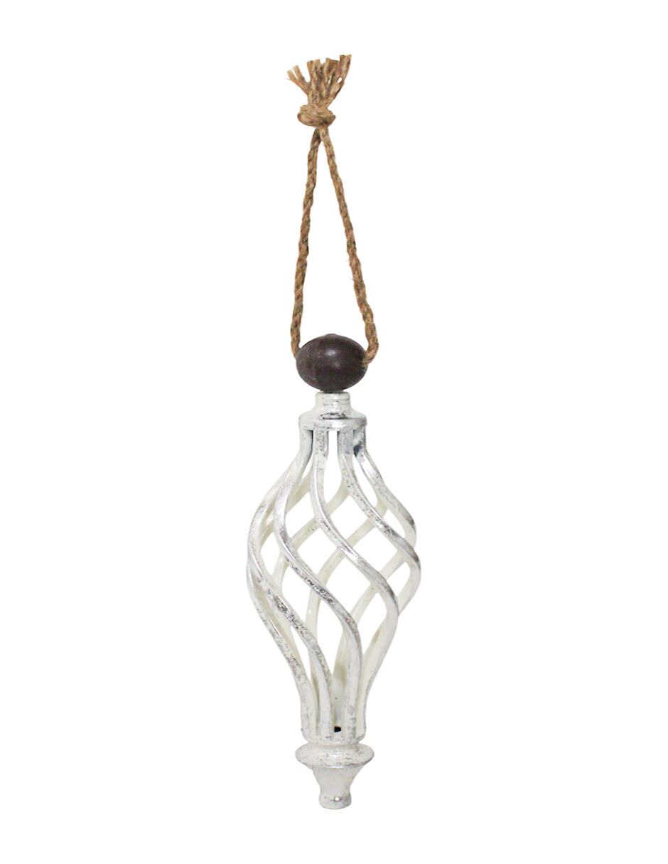 Colgante navideño de metal en un elegante color plateado. Ideal para decorar árboles, paredes o puertas, añadiendo un toque de lujo y festividad. Material: metal. Medidas: 8.89×8.89×25.41cm.